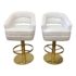 Design Plus Gallery presents a pair of Russel Bar Chairs by Essential Homes. A modern nod to an inspiration of Hollywood Regency and Art Deco. Upholstered in a white leather with a golden polished brass base. The base can spin 360 degrees, providing stress‐free movement to delve into the space around. Handmade in Portugal. Arm Height: 35 inches, Seat Height:31 inches.