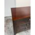 Design Plus Gallery presents a Bow Front Early 21st Century Dresser from Ethan Allen. The wood dresser has a medium cherry wood finish with shiny lacquer finish and ring pull antique nickel drawer pulls. Each row has three drawers of staggered size. Is in fair/good condition overall with visible wear for its usage. Areas of finish had been removed. Made in USA.