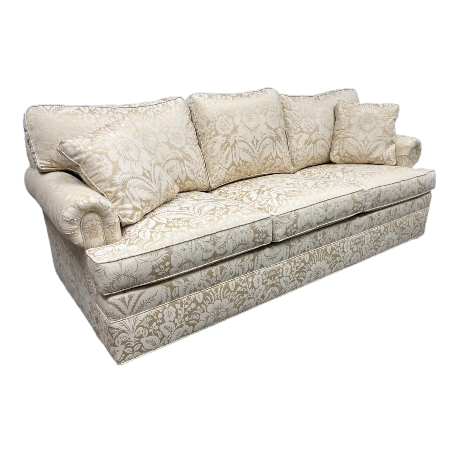 Ethan Allen Champagne Damask Sofa. Original Price: $2,200