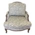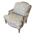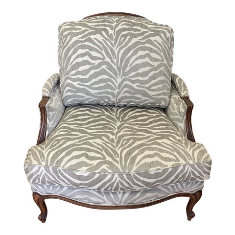 Design Plus Gallery presents a Custom Upholstered Versailles Chair by Ethan Allen. Custom upholstered in a gray and white zebra print chair.