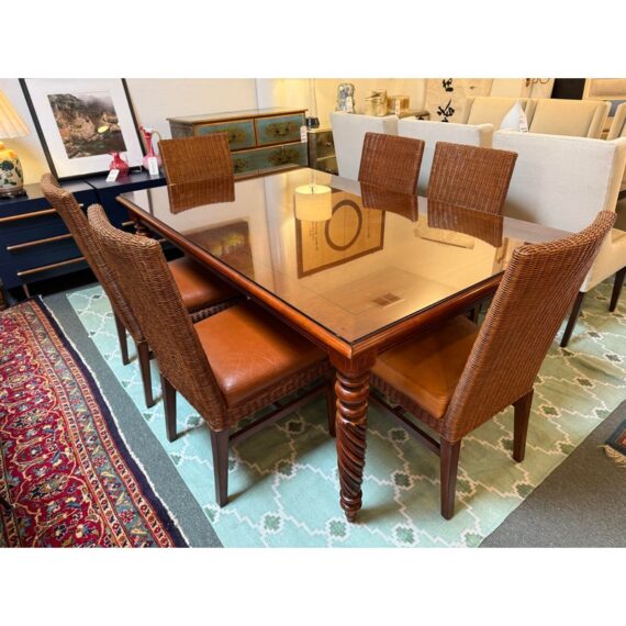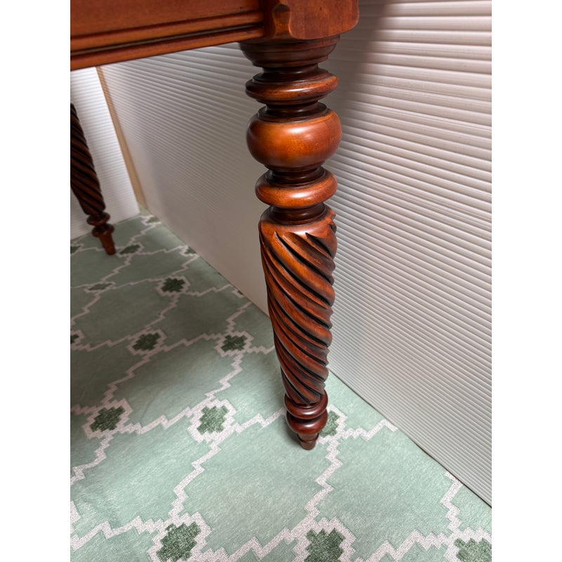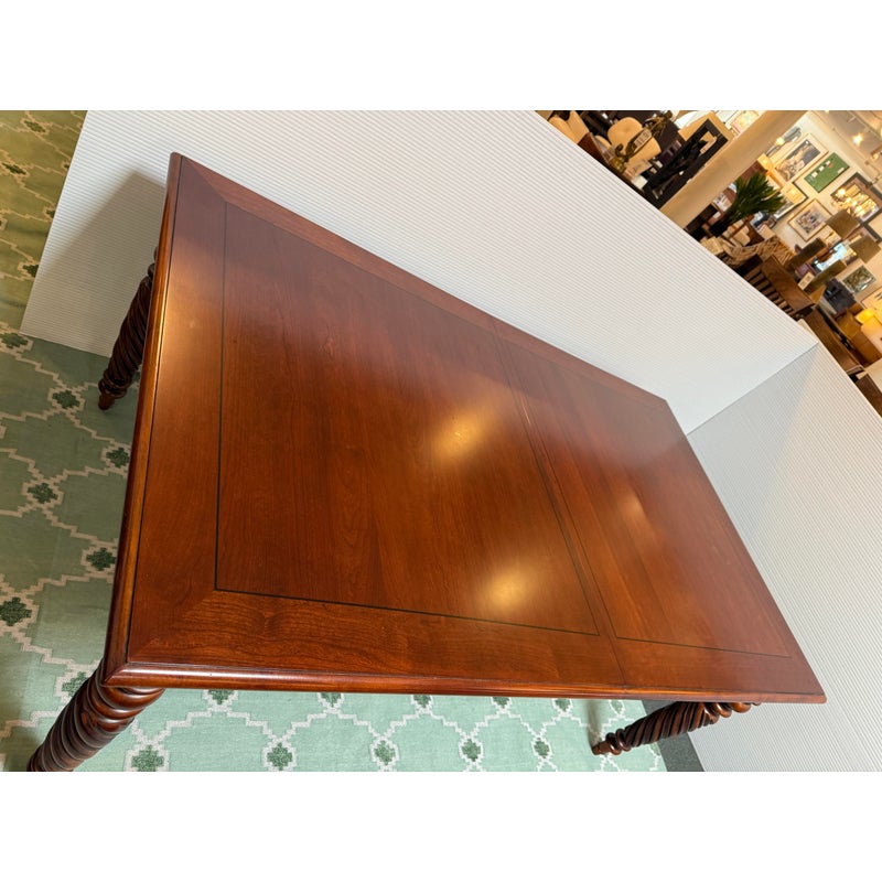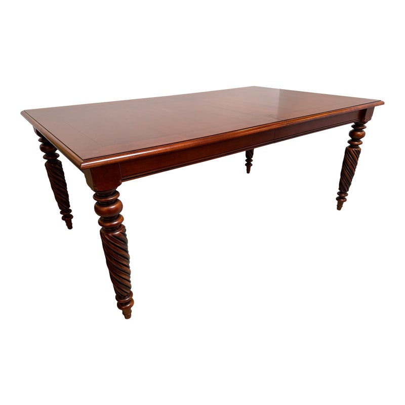 Design Plus Gallery presents the Livingston Extension Dining Table by Ethan Allen. Handcrafted in American workshops and influenced by island antiques, the classic dining table features hand-carved details, spiral legs and reeded apron.