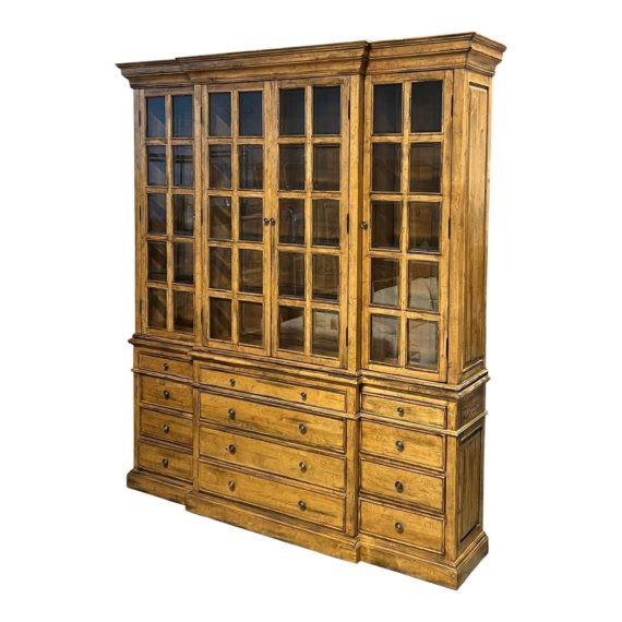 European Rustic Breakfront Glass + Maple China Cabinet/Display Hutch