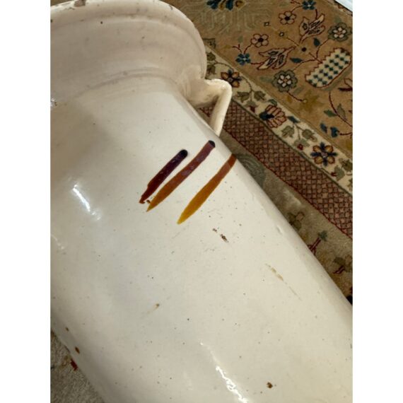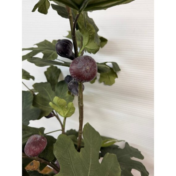 Design Plus Gallery presents a Faux Fig Tree in Ceramic Jug. Enjoy the ornamental beauty of a fruiting fig tree in your home without the maintenance. This lifelike member of the mulberry family features beautiful broad green leaves, fruit in various stages of ripeness, and a realistic trunk and branches. The faux plant will evoke the natural beauty of the Mediterranean countryside, whether in a formal or casual space. It is in good condition for its usage.