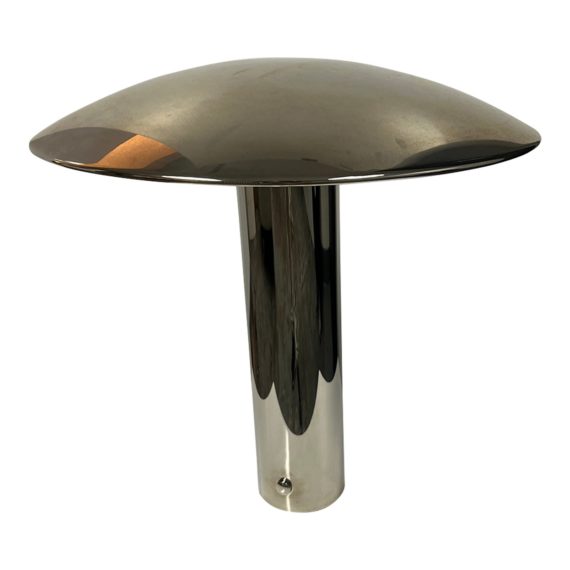 Design Plus Gallery presents a Rare “TO” Table Lamp by Licht & Objekt. Designed by Florian Schulz. A chrome finish cylindrical frame with a removable dome shade. A strap of LED lights illuminates the item. This is a rare item, label underneath. In good condition, visible and minor wear from usage + age. Made Germany.