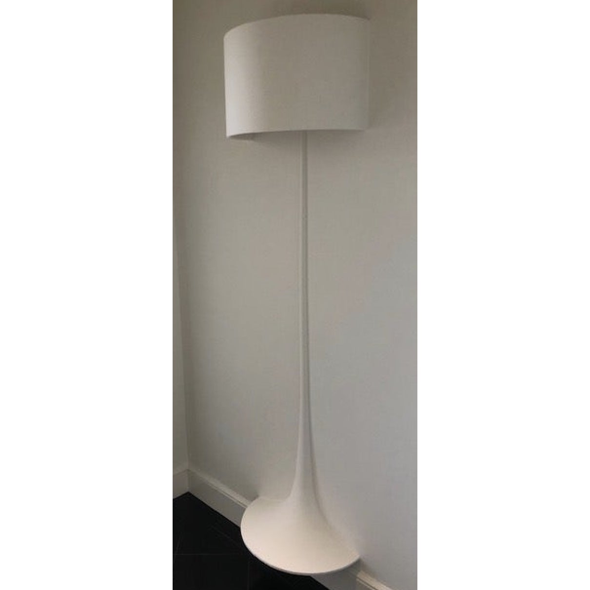 Design Plus Gallery presents a FLOS Soft Spun Large Wall Lamp. Professional installation required with a plaster wall application to create a seamless effect as pictured in the last image. Lighting radiates from both the base and the shade formation on top. Includes LED lighting. Designed by Sebastian Wrong who’s known for his quirky, creative yet serious modern designs. Wrong started as a sculptor which is evident with this plaster form. Make a statement with this gravity defying + wall merging piece of art & light. Visible wear on sides and right of the top shade where seaming is to take place by professional. Ideal for larger spaces, such as living rooms or hallways.
