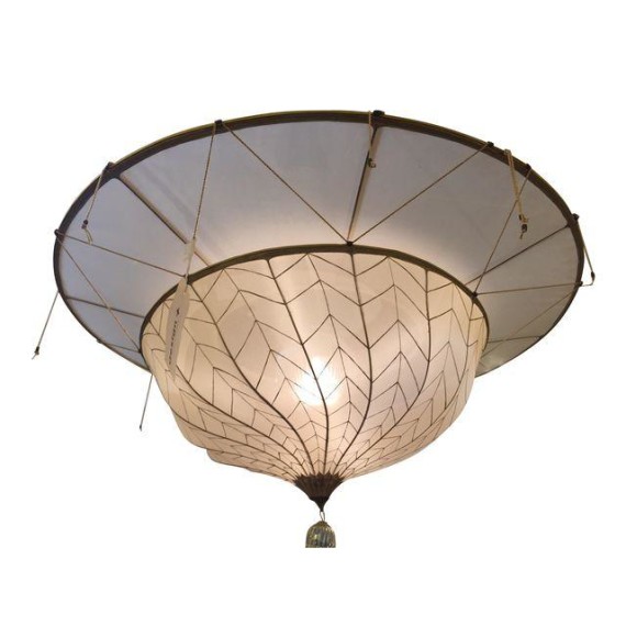 Design Plus Gallery brings us a hand crafted and hand painted Fortuny Style Silk Pendant. The double layer silk shades deftly hide the molded glass globe. This is a custom designed piece created by a San Francisco Designer that will add grace and elegance to any setting. It is equally lovely in a foyer, dining room or bedroom.