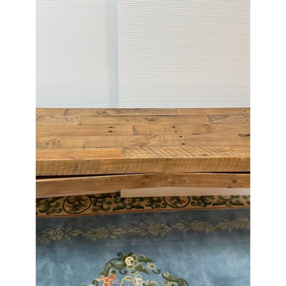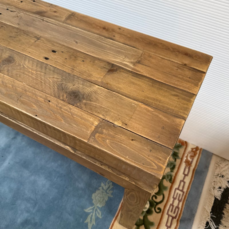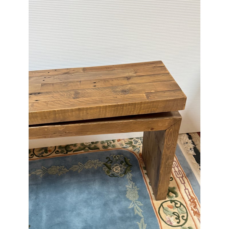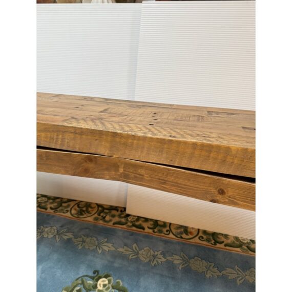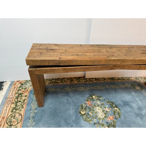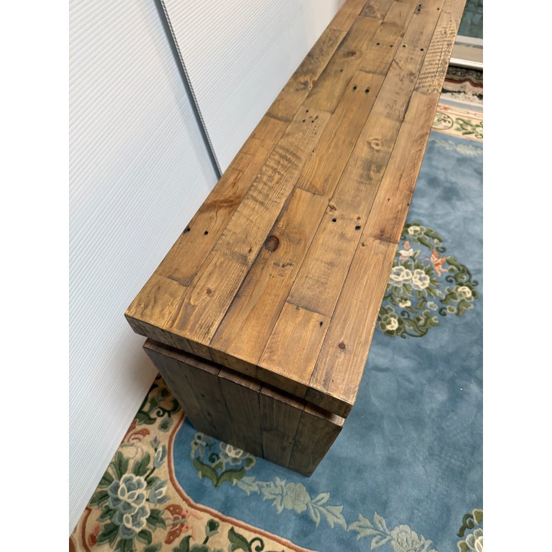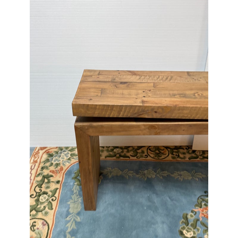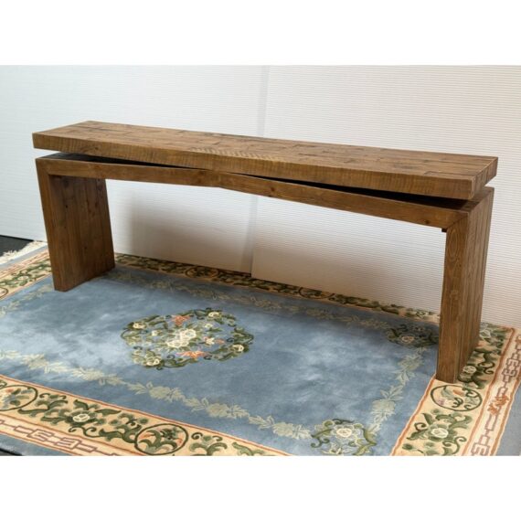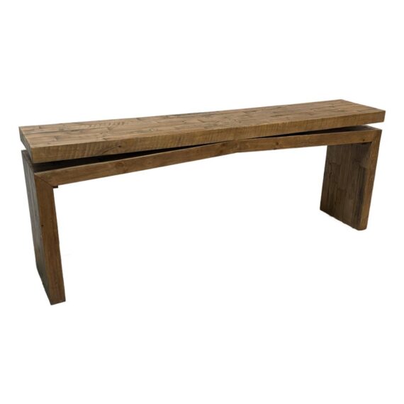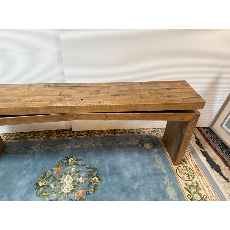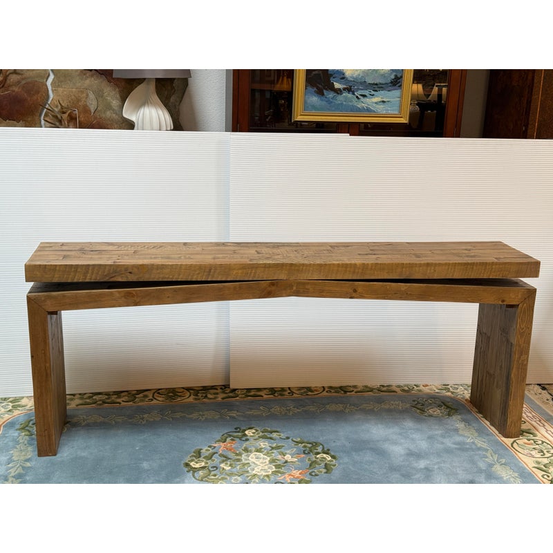 Design Plus Gallery presents the Matthes Console Table by Four Hands. Mixed, reclaimed woods are crafted in a simple designed to showcase the natural beauty of the pine. The modern silouette makes for a stylish media console, an understated entry way table or organic modern sofa table. Light surface wear; condition is good for age and use.