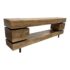 Design Plus Gallery presents a Dillon Console Table from Four Hands. From the Bina Collection. Long and lean with undeniable presence, the Dillon Console delivers stylish storage in a slender profile. Stacked, contrasting planes of American walnut, peroba, and cruzeta woods seem to hover in formation above airy iron supports, while rounded brass hardware lends a soft, refined touch. Two dovetail drawers to keep everyday essentials neatly tucked away. Handcrafted from a thoughtful mix of sustainably harvested and reclaimed woods, Dillon layers rough and refined textures with time-worn patinas for a rustic‑modern look that bridges old and new. Because the materials are reclaimed, subtle variations in grain, color, and tone make each piece truly one of a kind. Simple yet sculptural, this long, narrow console feels light in the room and blends beautifully with a range of decorating styles—perfect for entryways, hallways, or behind a sofa. This is a discontinued model. In good condition, visible and minimal wear from usage.