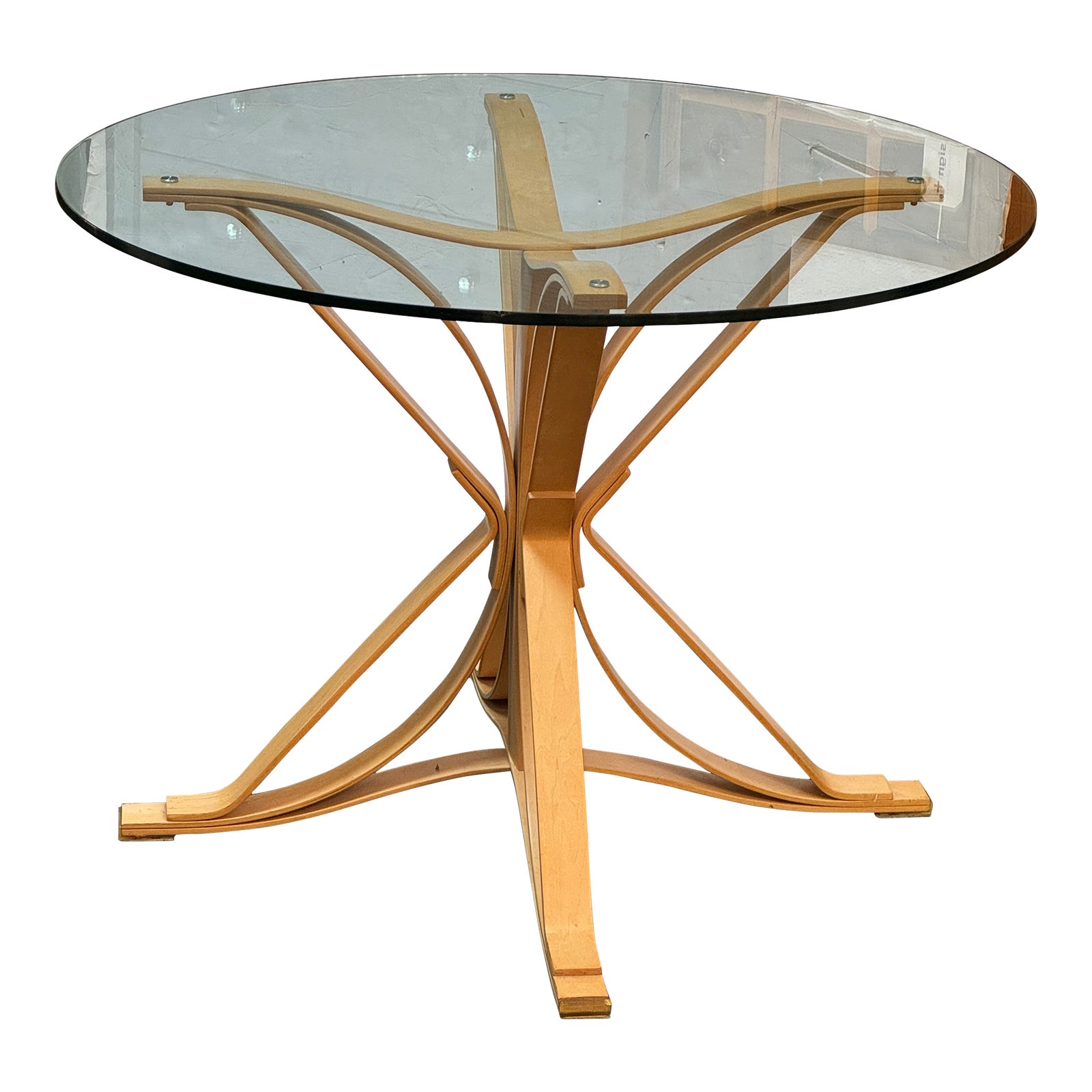 Frank Gehry for Knoll Face Off 40 Inch Glass + Wood Dining Table. Original Price: $4,422