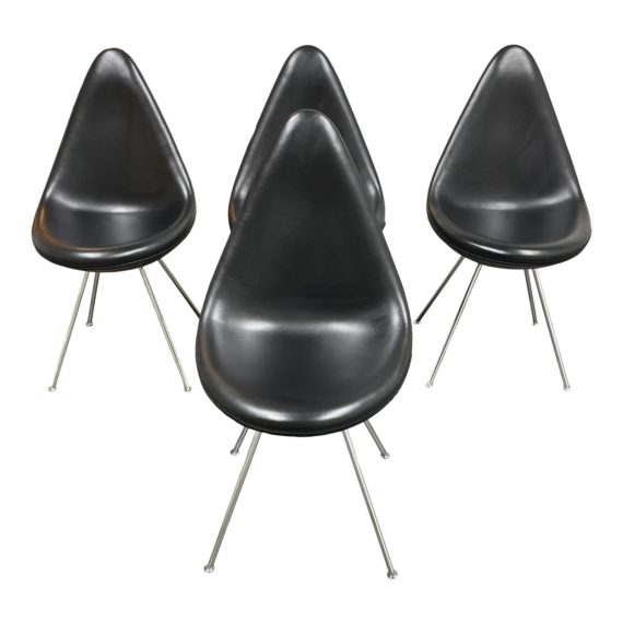 Design Plus Gallery presents a Set of Four Drop Chairs by Fritz Hansen. Designed by Arne Jacobsen in 1958 for the legendary SAS Royal Hotel in Copenhagen. It was originally manufactured along with Jacobsen’s Swan and Egg Collections but in very limited quantities.