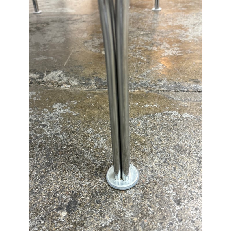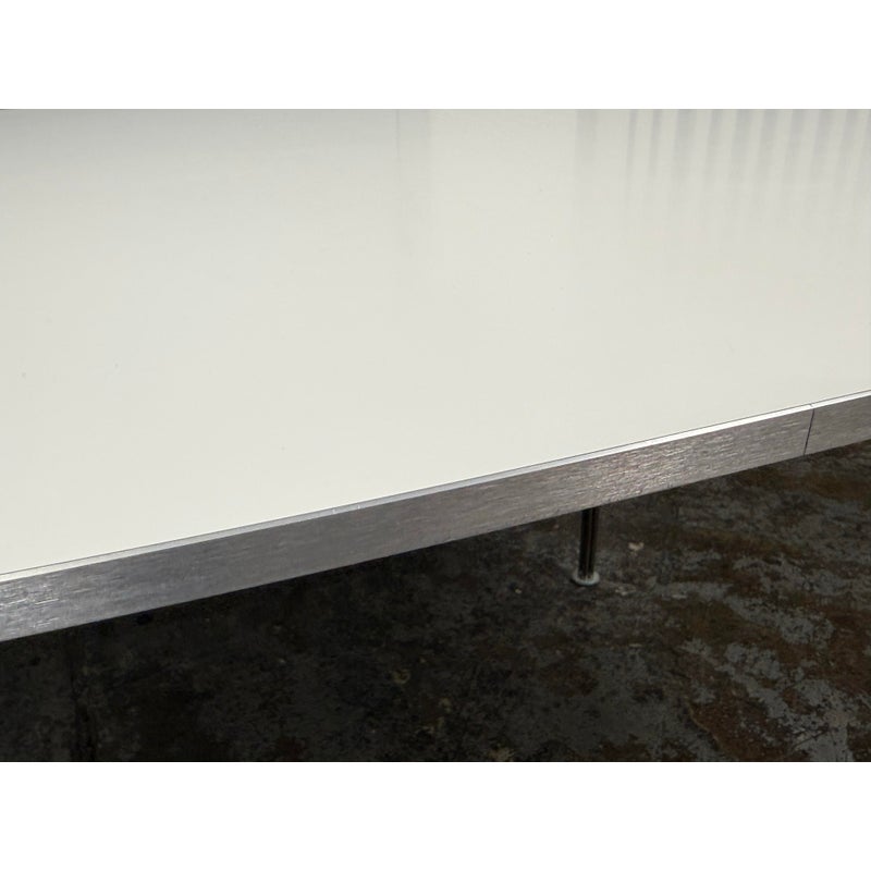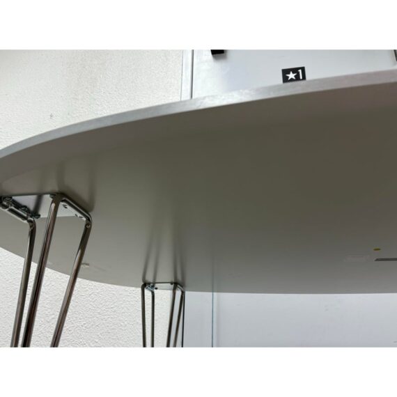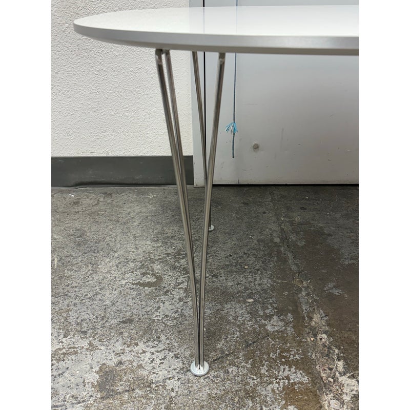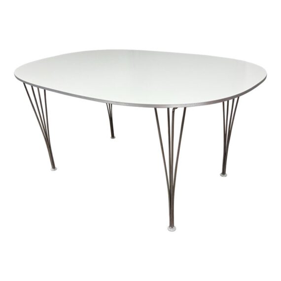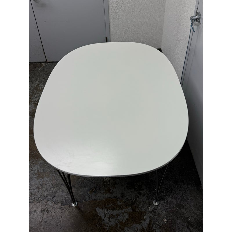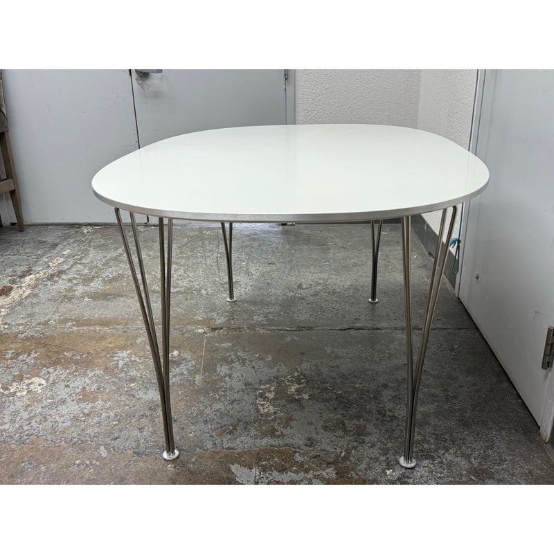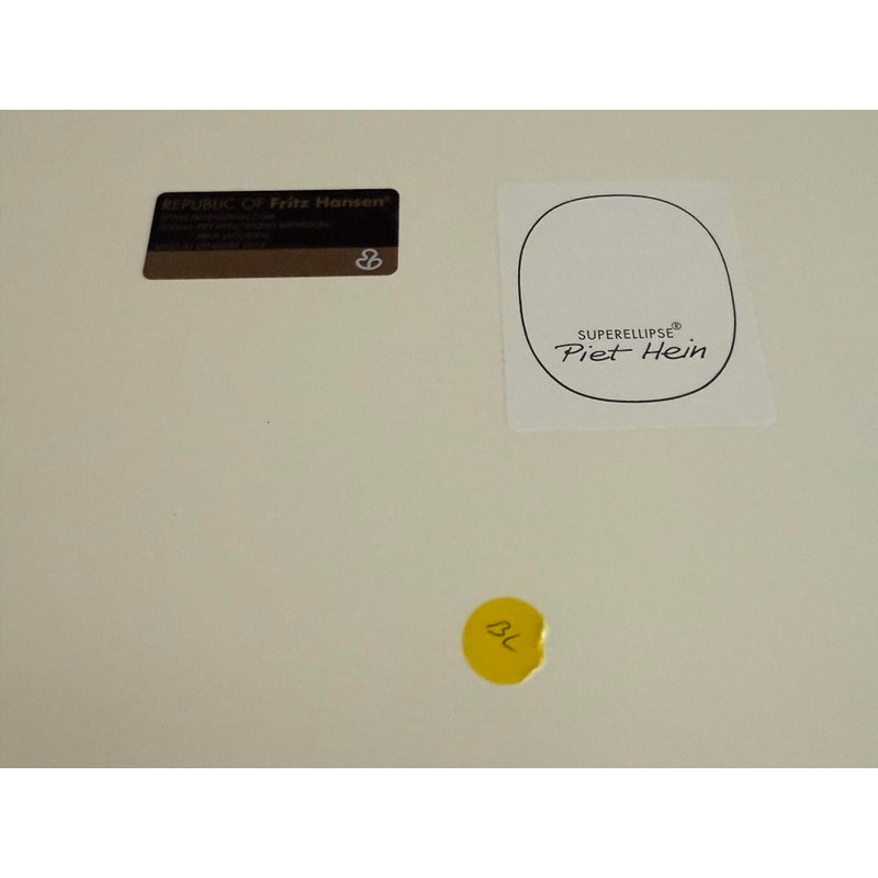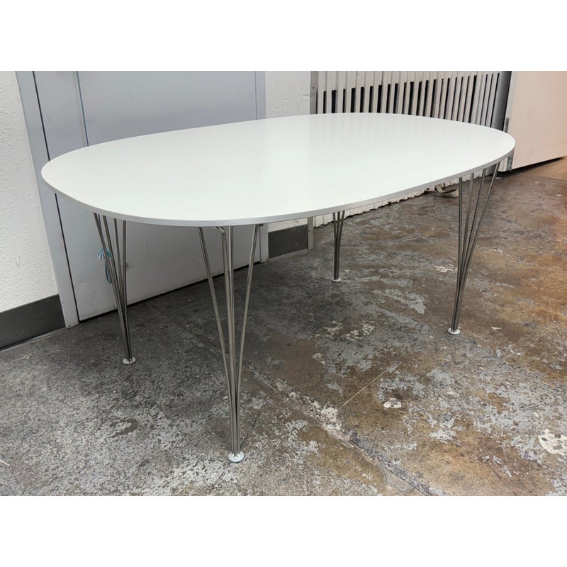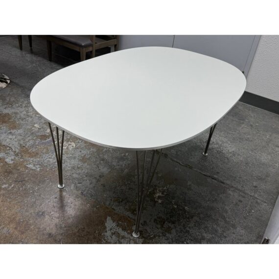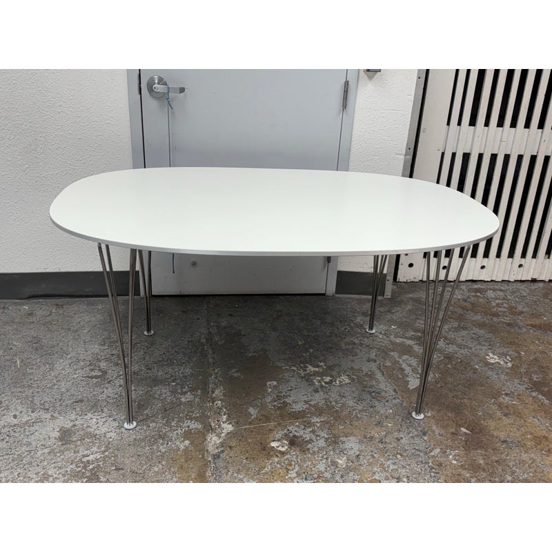Design Plus Gallery presents the Small Superellipse Dining Table by Fritz Hansen for Design Within Reach. Inspired by a solution to traffic problems, the Superellipse Dining Table from Fritz Hansen offers a pleasantly rounded design that encourages inclusive gatherings with no obvious head of the table. Able to accommodate four to six people to collaborative work space or meeting conference table, or traditionally for family dinners. Is in good condition with minimal visible wear for its usage. Made in Denmark.