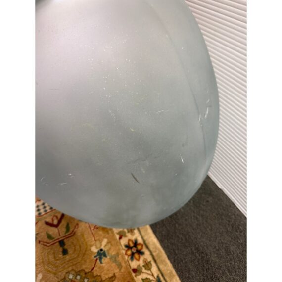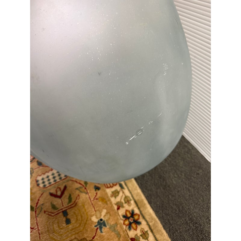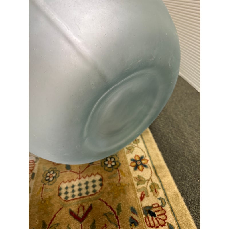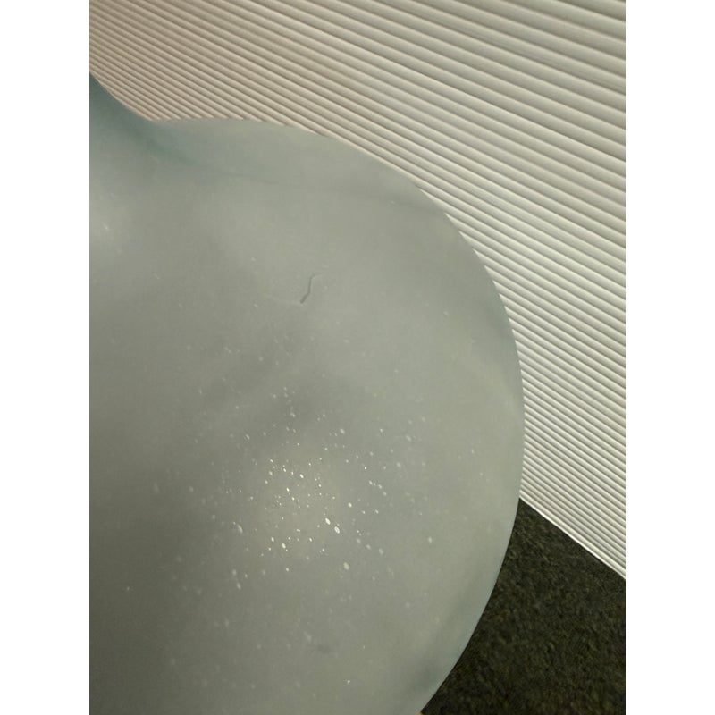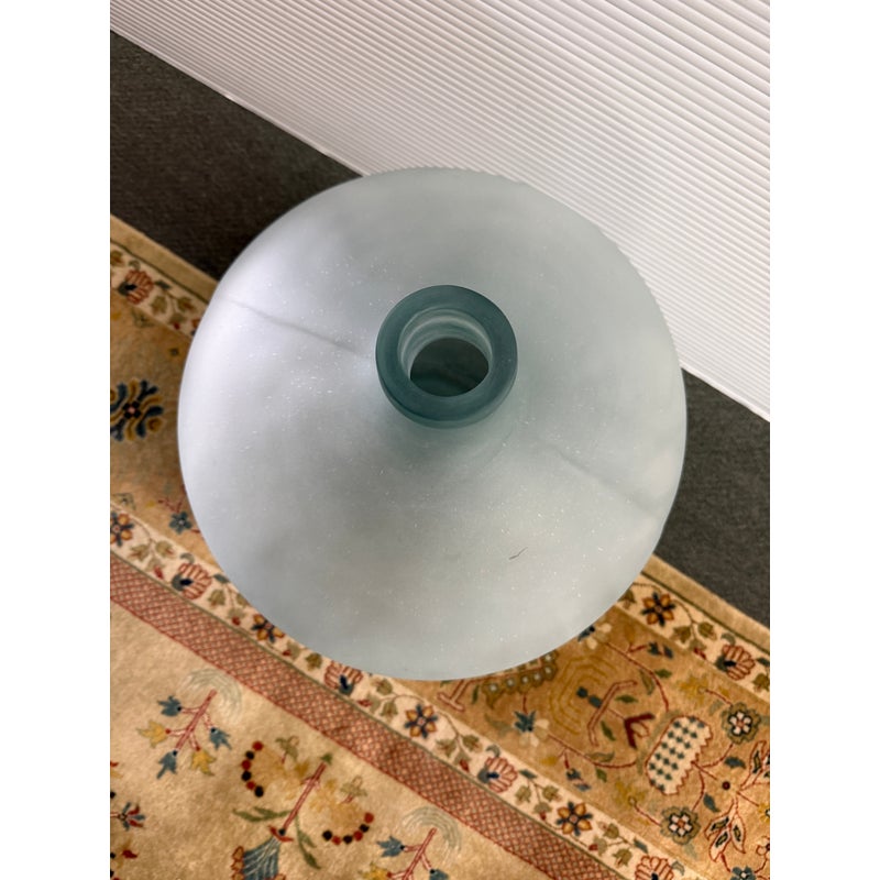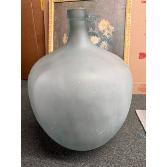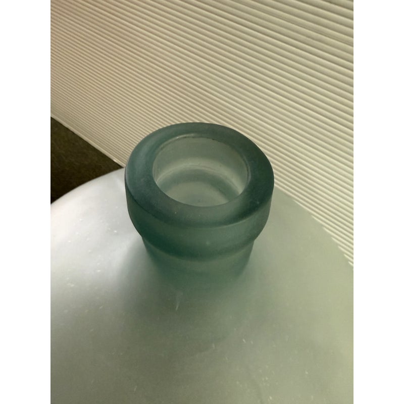Design Plus Gallery presents a Vintage Frosted Glass Wine Bottle. A sculptural vessel traditionally used for storing and transporting wine. Featuring a generous rounded body and narrow neck, this classic form dates back centuries in European winemaking and was commonly used for wine, cider, olive oil, and other liquids. Crafted in thick glass with a soft frosted finish, this piece has a beautiful minimalist presence that works equally well as a decorative accent. in good condition, visible and minimal wear from usage.