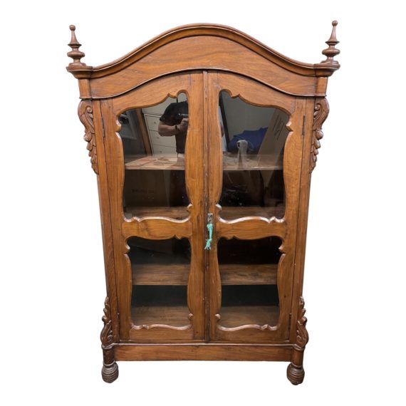 Design Plus Gallery presents a unique display cabinet by Gado Gado. Gado-gado in Indonesian literally means “mix-mix” which is what you find in this lovely storage piece. You will find wood that curves, is carved or turns and delights. Four fixed shelves behind glass offer lots of display and storage.