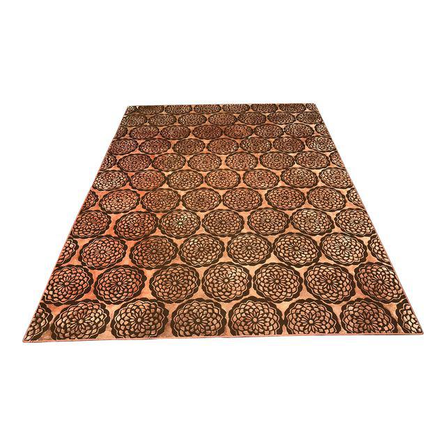Design Plus Gallery presents a Galbraith & Paul rug. Founded in Philadelphia in 1986 by Liz Galbraith & Ephraim Paul, Galbraith & Paul is a studio workshop specializing in hand block printed textiles and studio. A beautiful Apricot and Brown Pizzelle wool and silk. The colors are much more vibrant than the picture indicates.