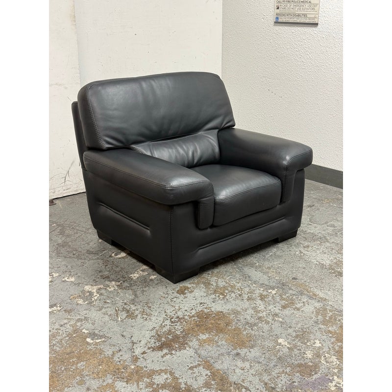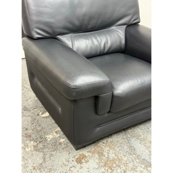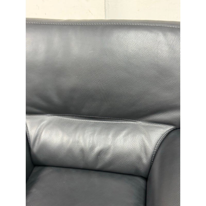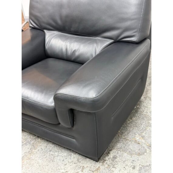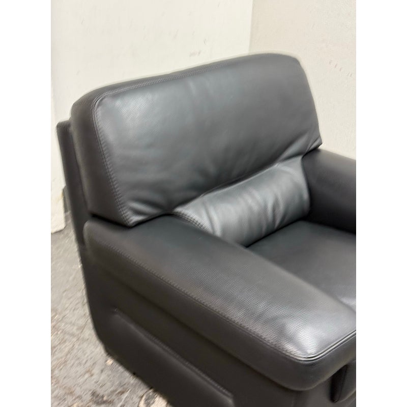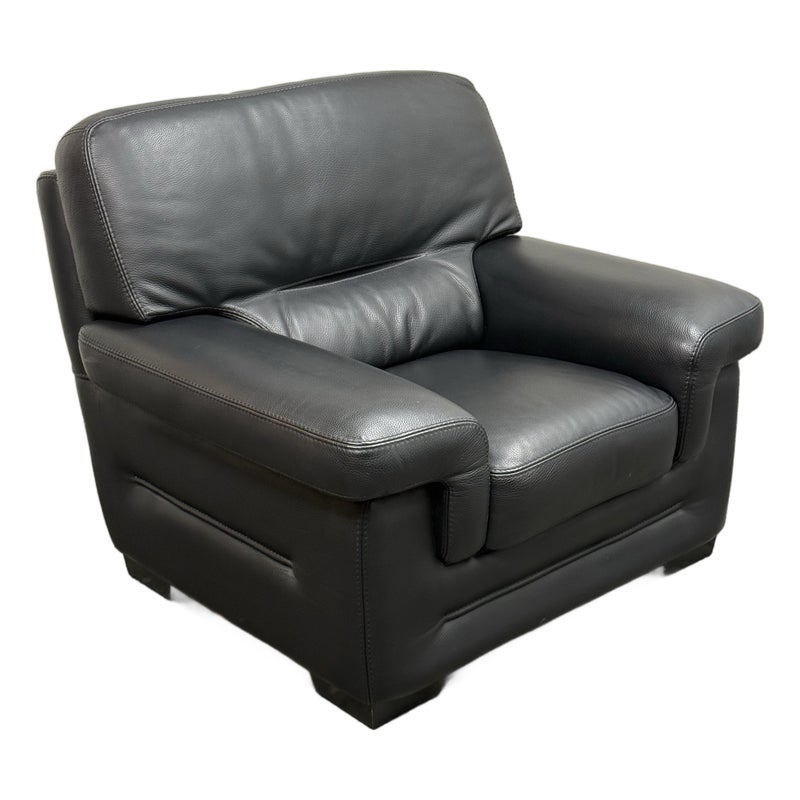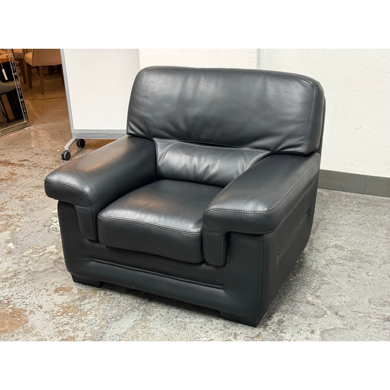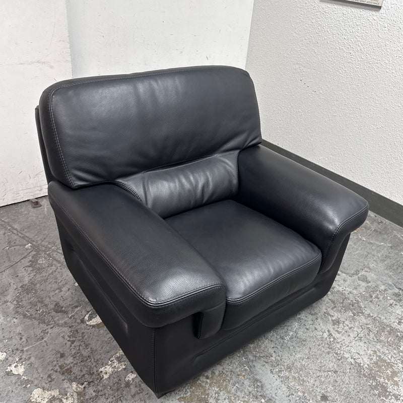Design Plus Gallery presents a Full-Grain Leather Lounge Chair from Gamma Arredamenti. A timelessly Italian design, this chair has all the durability you could wish for. The blend of most premium leather in sophisticated black can lend itself to a powerful design in your home. The chair has a seat + back removable leather cushions that zipper on/off. There is built-in lumbar supports, padded arms and is in its entirety covered in this supple leather. This style is no longer in production with the designer. It does shows minimal signs of wear for its usage. Made in Italy.