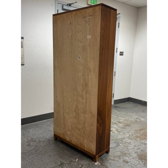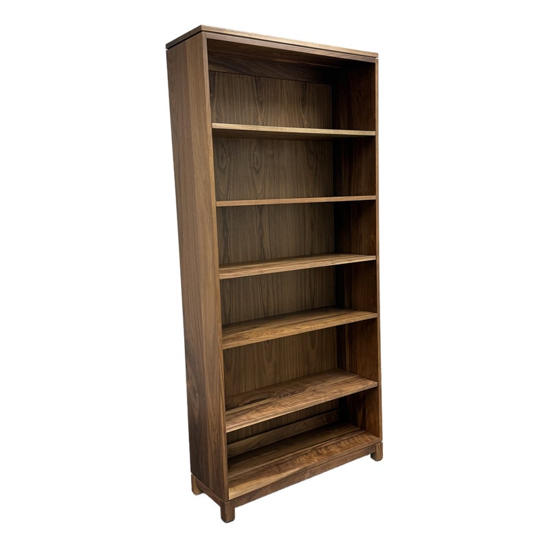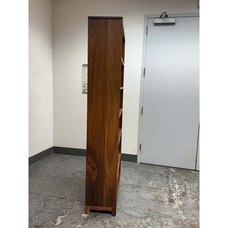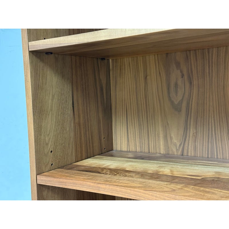 Design Plus Gallery presents the Oxford Walnut Bookcase from Gat Creek. This shelving is made from sustainably sourced Appalachian walnut wood. It has a natural finish to highlights the wood’s grain with warm undertones. Standing tall, the Oxford shelves offer both function and flexibility. There is one fixed shelf for solid structural support and four adjustable shelves on each that allow you to customize the space for books, decorative pieces, or collectibles of varying heights. In good condition, visible and minimal wear from usage. Made in USA.
