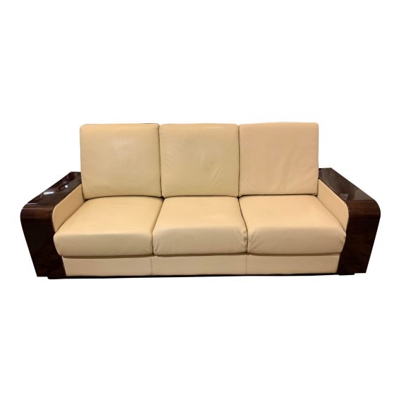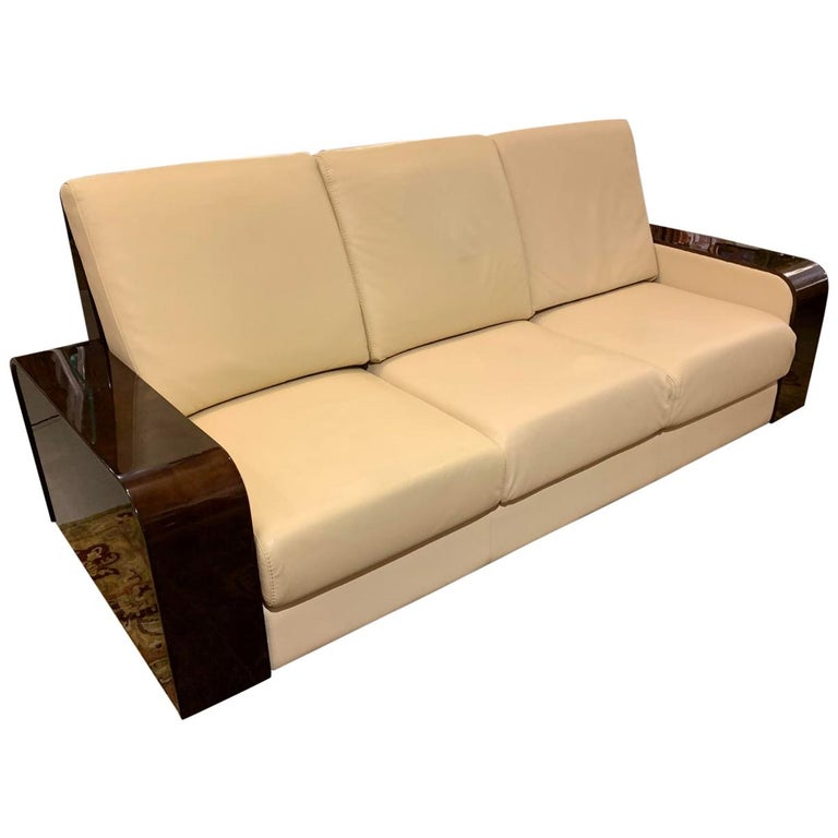 Giorgio Monte Carlo Collection Curly Sycamore + Leather Sofa. Original Price: $16,000