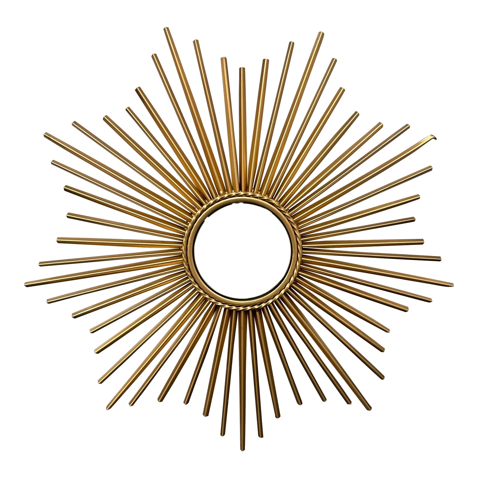 Design Plus Gallery presents a Mid Century Modern Style Brass Stardust Mirror from Global Views. Rays of gold extend from a round center mirror forming our Sunburst Mirror. The glowing piece makes a grand statement on any wall. Is in good condition with minimal signs of wear. Made in India.