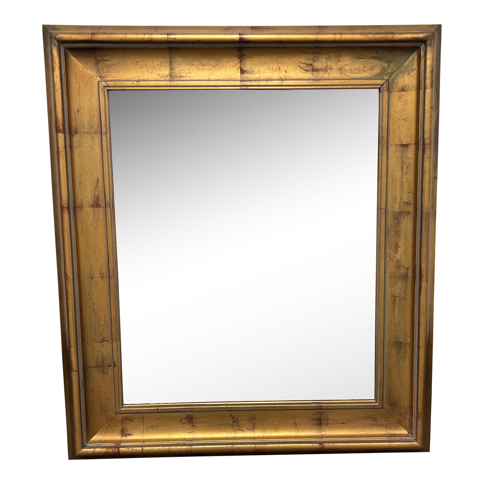 Design Plus Gallery presents a Golden Wall Mirror. It has a faux gilt like finish, nice brush strokes and interesting texture to brighten up your wall space. In good condition, minor wear. Ready to hung vertical or horizontal.