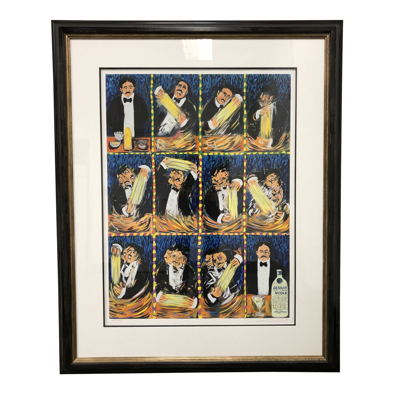 Design Plus Gallery presents a serigraph by Guy Buffet. A limited edition serigraph on paper titled “Martini In Blue”. Original screens destroyed. It is numbered, hand-signed by the artist, and comes with a Certificate of Authenticity. Year of publication in 2000 with MFA Talon Graphics. Inc. Signed 333/595