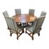 Design Plus Gallery presents a Haven Regency Dining Table by Guy Chaddock. A Country English style round 60″ table has an inlaid plank surface and a reeded edge. Finished with lovely metal caps, the legs allow for four to be seated comfortably. Designed and crafted in USA. Accompanied with a Guy Chaddock Set of 6 Dining Chairs. A classic design, these chairs are upholstered. A solid wood frame with a warm, distressed finish. A great set to add to your dining table. Chaddock goals are simple yet bold: to design and manufacture home furnishings of style, elegance and American-made quality for discerning designers and shoppers throughout the world.