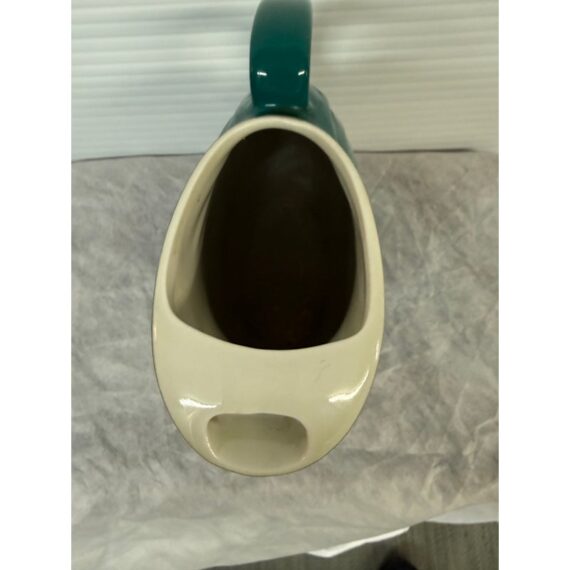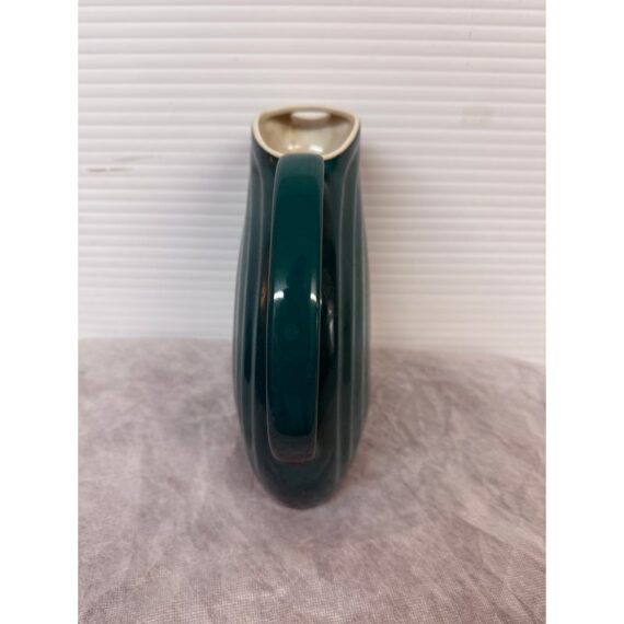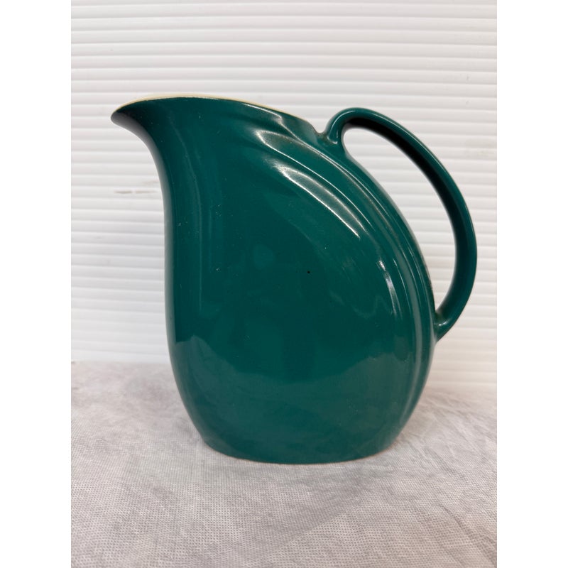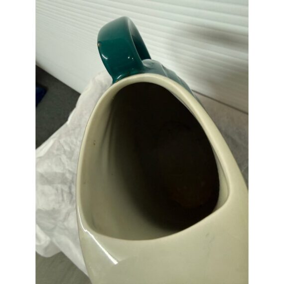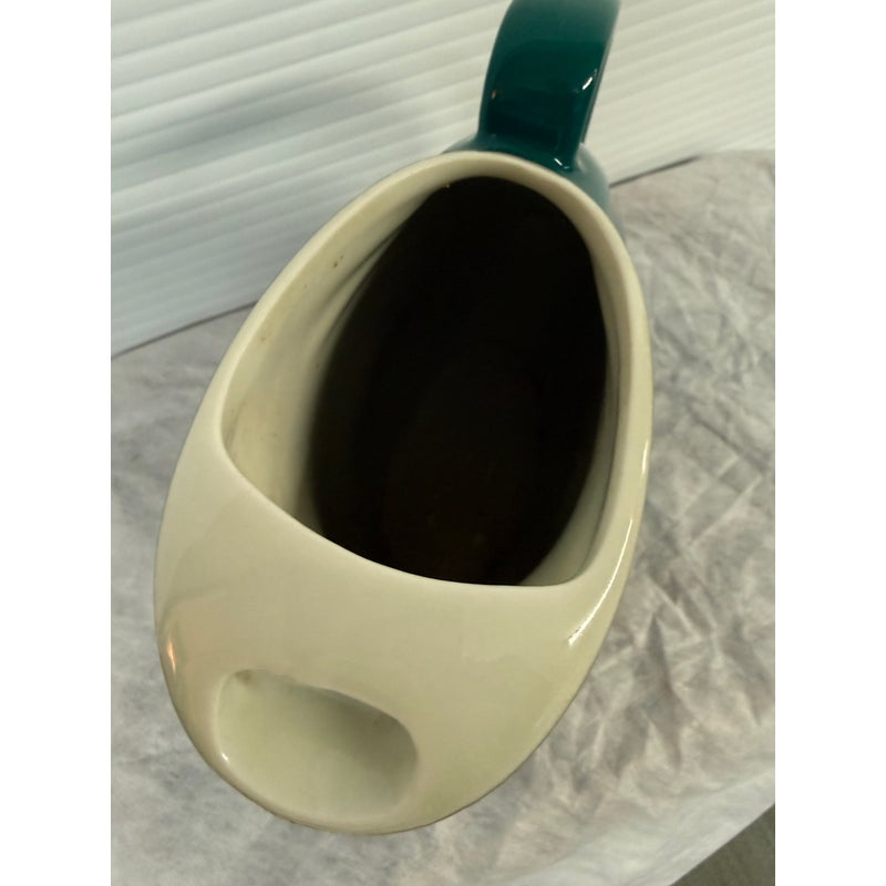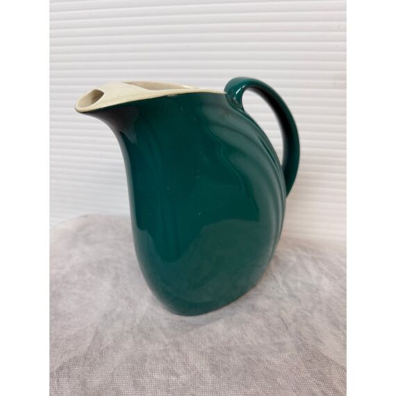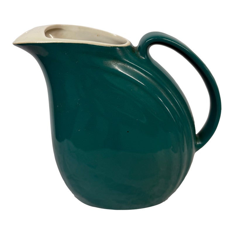 Design Plus Gallery presents a Vintage Nora Pitcher from Hall Pottery. Stunning in color, teal with a contrasting white interior, the vessel is a classic silhouette with everyday stylish function. Condition is good for age and use; no chips or cracks. Made in the USA.
