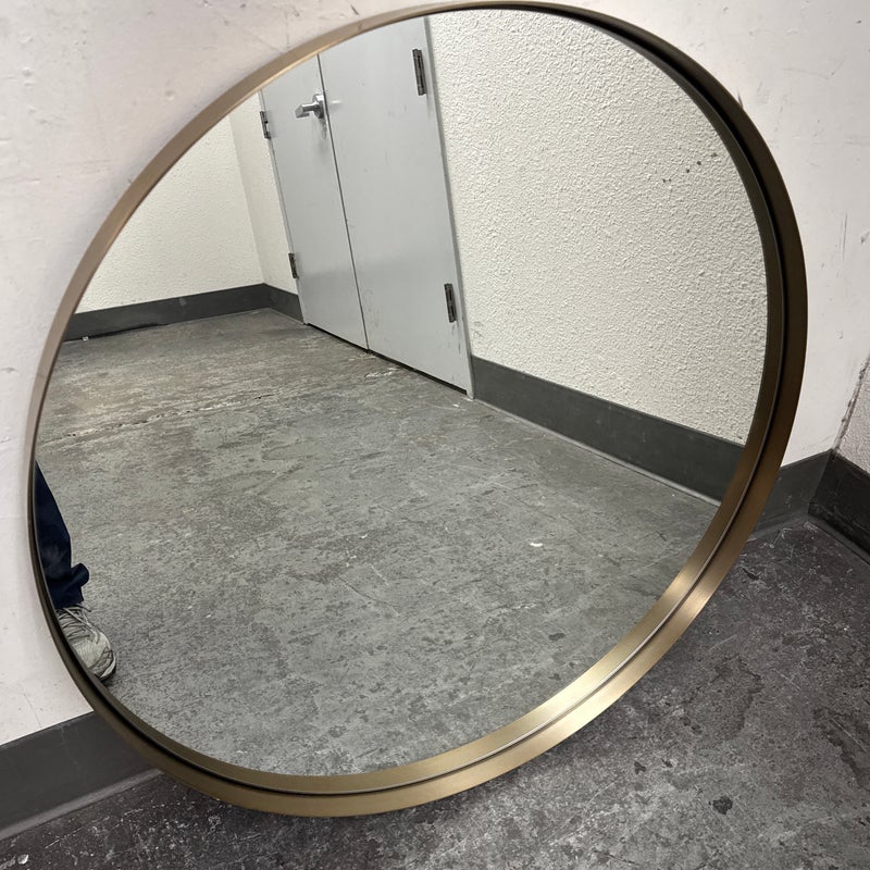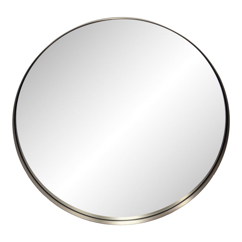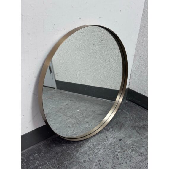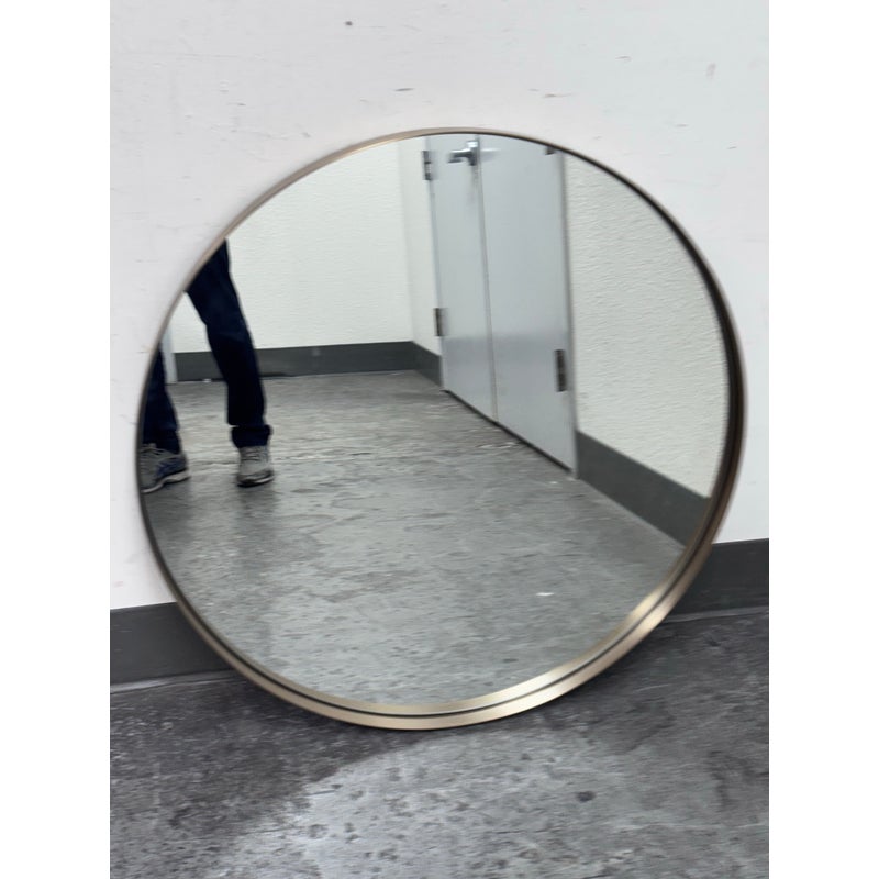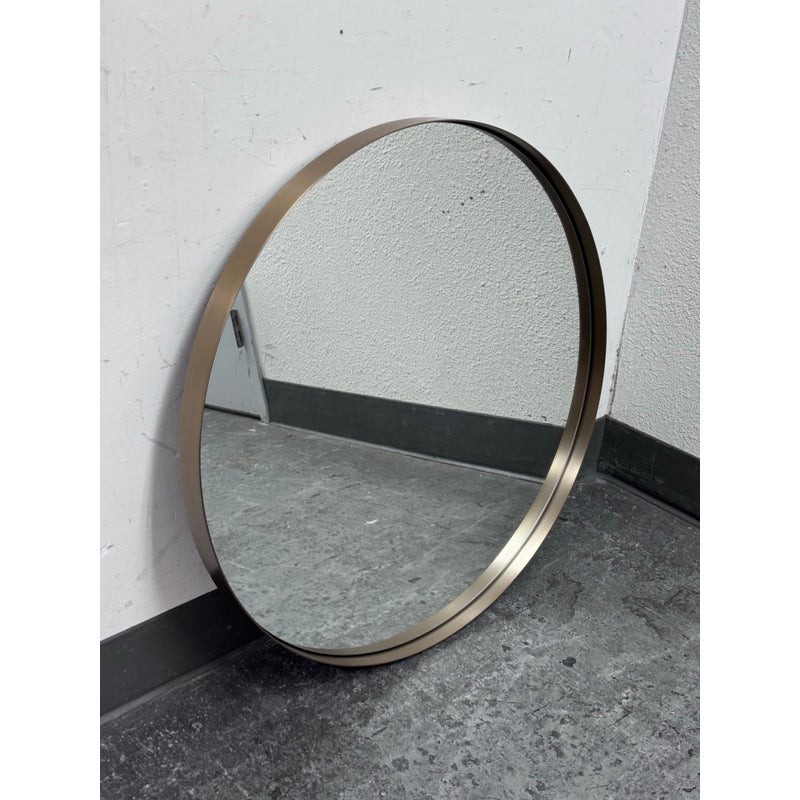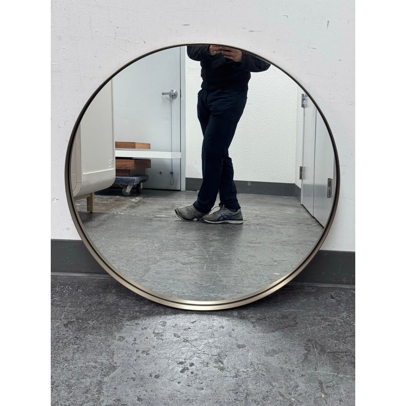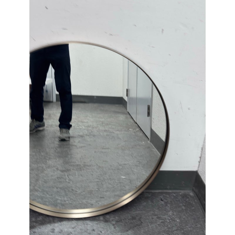 Design Plus Gallery present the Contemporary Metal Wall Mirror from Hamilton Hills. Bring simple sophistication to any room with the floating glass modern round circle silver metal framed mirror. Its brushed silver colored metal framed mirror is the perfect addition to various styles and design elements offering a contemporary finish. It is in good overall conditoin with minor visible signs of wear for its usage.