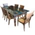 / Hand-Crafted Tibetan Door Table + Crystal Top + Six Carved Italian Chairs. Original Price: $25,000