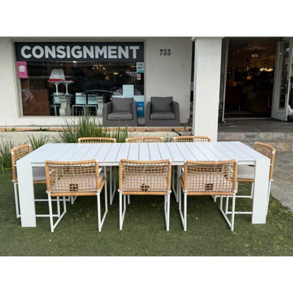 NEW Harbour Outdoor Hayden Dining Table + Loop Rattan Dining Chairs, Set. Original Price: $11,000