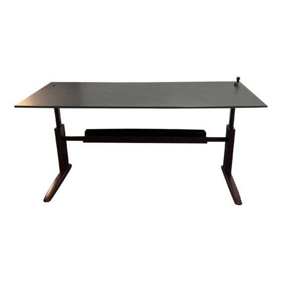 Design Plus Gallery presents an Haworth Upside Height – Adjustable Table With Hand Crank Lift by Haworth. This adjustable table moves with the person for optimal comfort throughout the day. The personalized adjustments bring ergonomic comfort that improves focus and productivity. No longer do office desk tables need to be stiff and unaccommodating, adjustable table gives people freedom to move and work. Good condition, with wear that is consistent with age and usage.