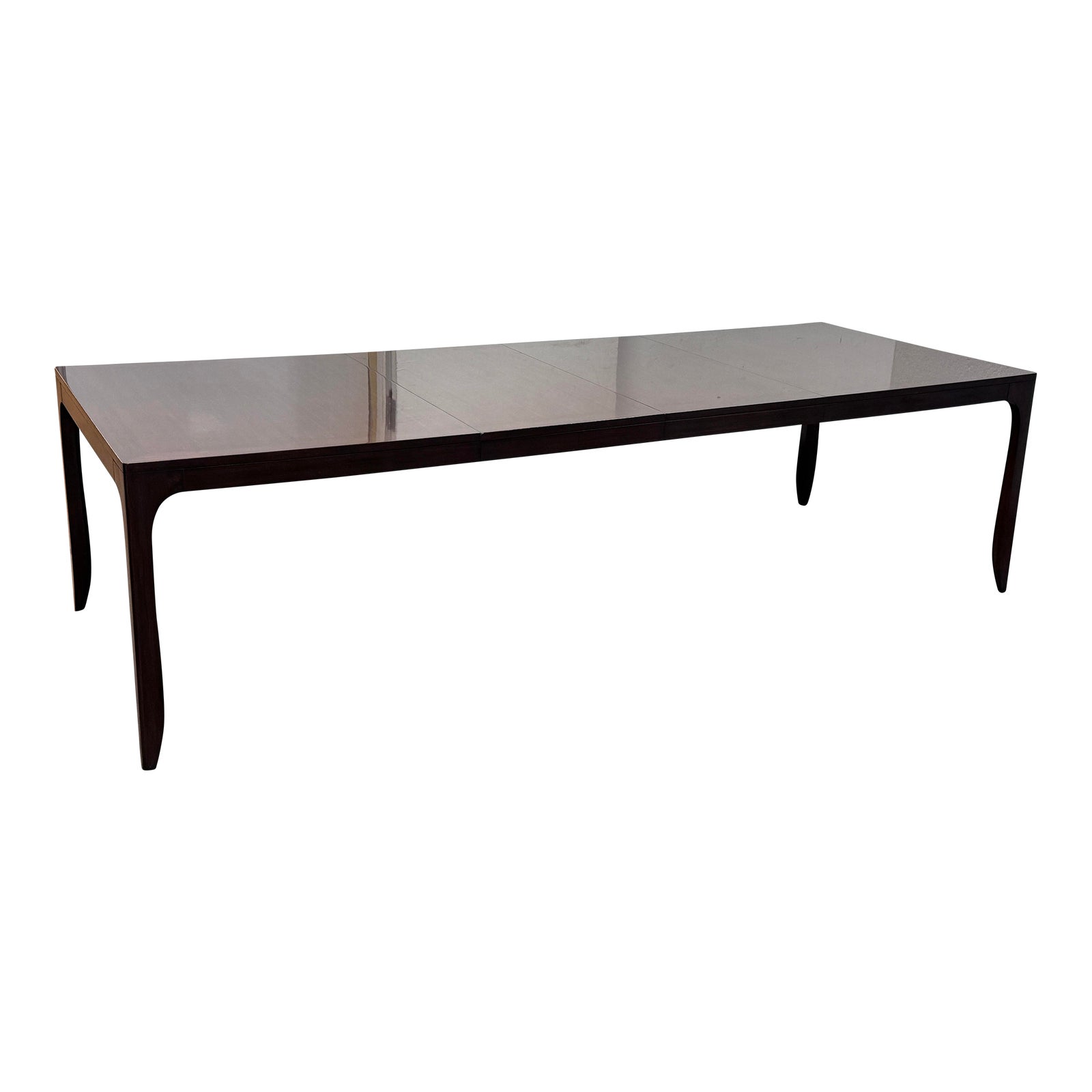 Design Plus Gallery presents an Extension Table by Henredon. Crafted from solid woods and finest veneers. Accompanied with two extensions. In good condition, visible and minor ear from usage + age. Made in the Philippines.