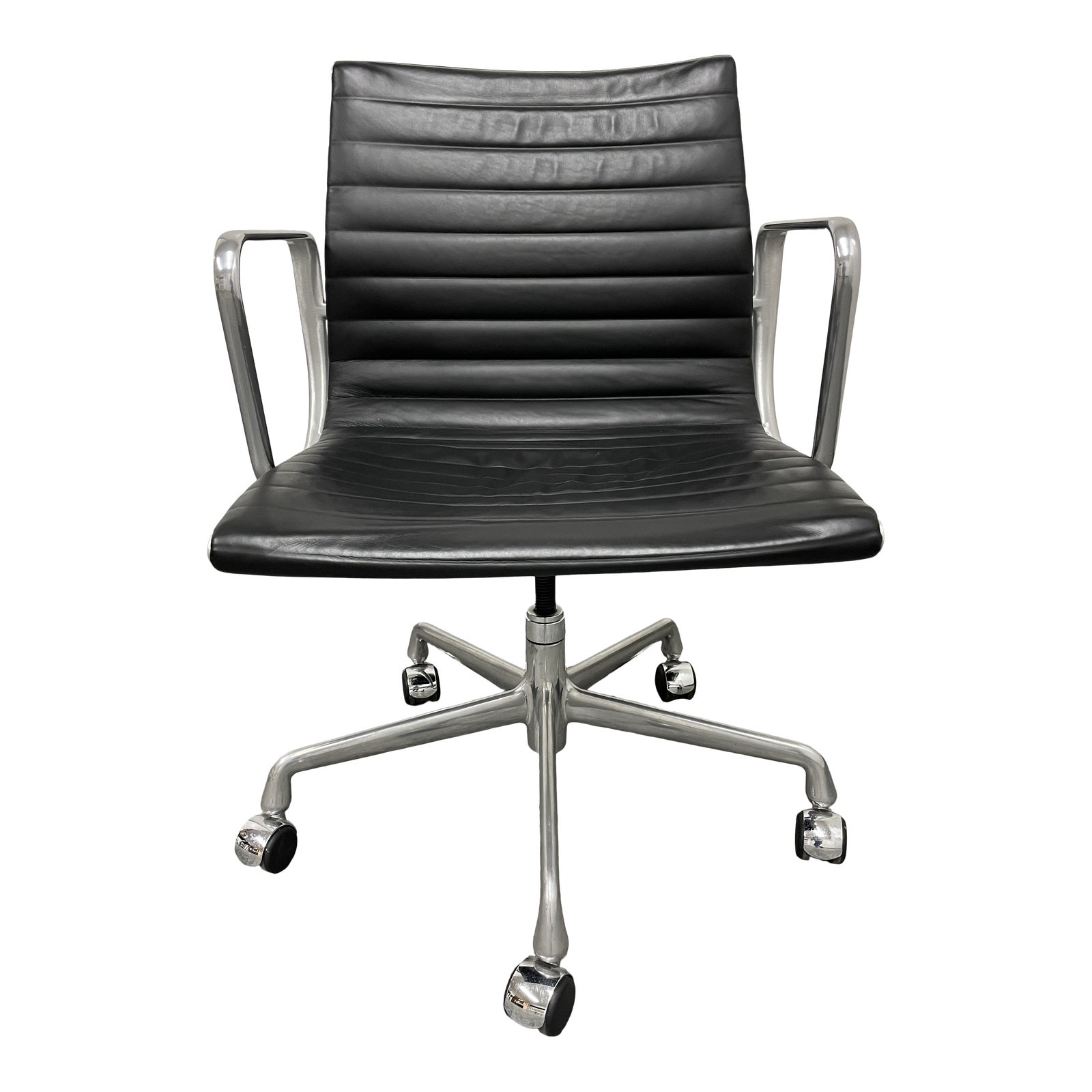 Herman Miller Eames Aluminum Group Management Black Leather Chair. Original Price: $2,295