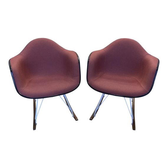 Herman Miller Eames Maroon Fabric + Walnut Runner Rocker Chairs – a Pair. Original Price: $1,990