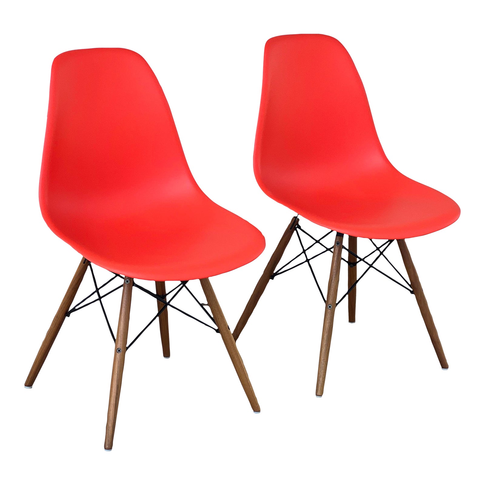 Herman Miller Eames Red Plastic Molded Side Chair, a Pair