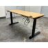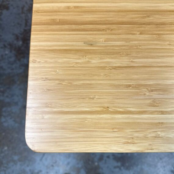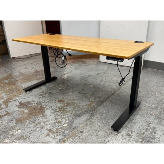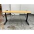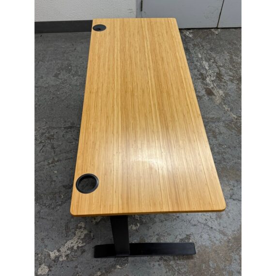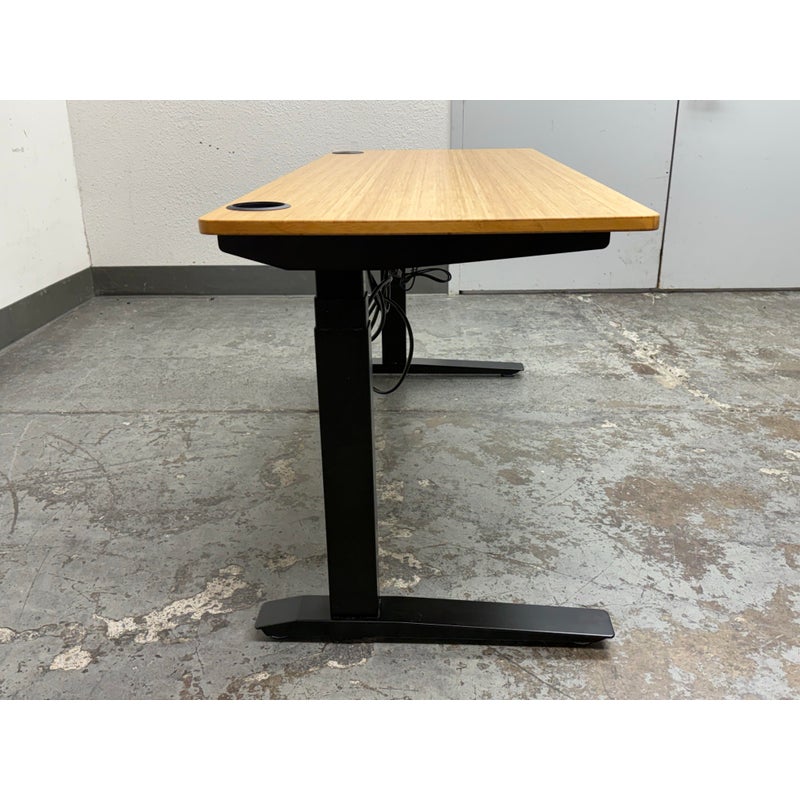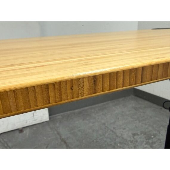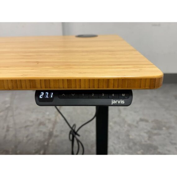 Design Plus Gallery presents an Adjustable Jarvis Desk from Herman Miller. Encouraging a variety of dynamic positions, sitting and standing, throughout your workday. Created with an all-steel frame, the black finish upper and lower cross bars mean greater lateral stability and sturdy base supporting the bamboo surface. Adjustable, you have fast, smooth height adjustment. In good condition, visible and minimal wear from usage. Missing a surface cap for the wire passage.