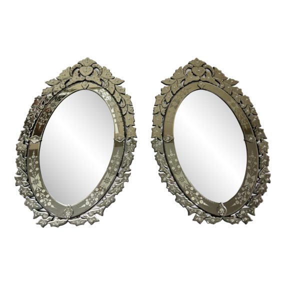 Hermosa Oval Venetian Style Wall Mirrors, a Pair. Original Price: $2,258