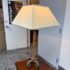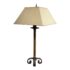 Design Plus Gallery presents a Vintage Hollywood Regency Bamboo Form Table Lamp + Rectangular Shade. It has a tapered linen shade, bamboo form, and scroll iron base. The lamp combines organic texture with sculptural detailing in a balanced silhouette, while the patina and surface variation throughout the frame highlight its age and character. The neutral shade softly filters light, and the variation across the metal and bamboo form elements adds depth and individuality. The lamp shade does wobble. It is in good condition with visible and minimal wear from usage. .
