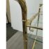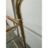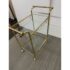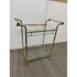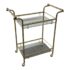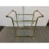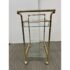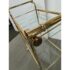 Design Plus Gallery presents a unique Double Handle Bar Cart. The cart offers a classic silhouette with double handles. The complete brass frame is shaped to resemble bamboo reeds. The bar cart offers an upper and a lower glass shelf with brass rails + casters to take your libations where needed. Light wear; condition is good.