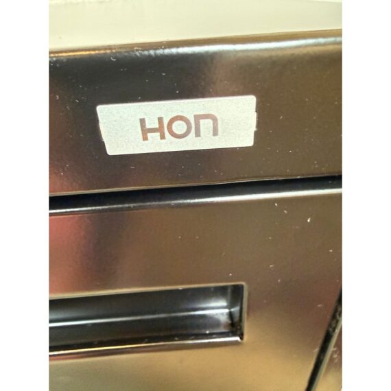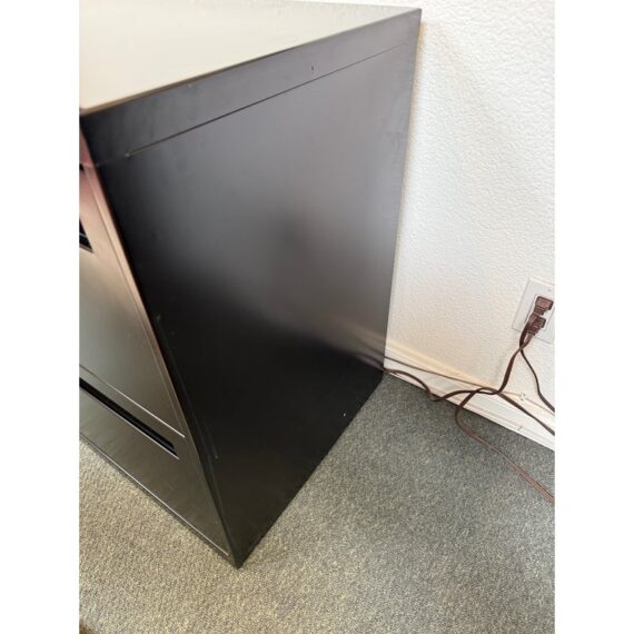 Design Plus Gallery presents a Double Drawer Lateral File Cabinet from Hon. Lateral file offers clean lines, reinforced case construction. The finish is black. Three-part, telescoping, ball-bearing suspension delivers smooth drawer operation. In good condition, visible and minimal wear from usage.