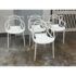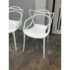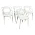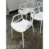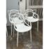 Design Plus Gallery presents a Set of Four Masters Style Dining Chairs. Defined by an interwoven openwork back and fluid sculptural lines, these chairs reference iconic midcentury forms through a single continuous profile. The molded seats and tapered legs give the set a light visual presence, while the monochrome look emphasizes the graphic quality of the design. They are in good condition with visible and minimal wear from usage.