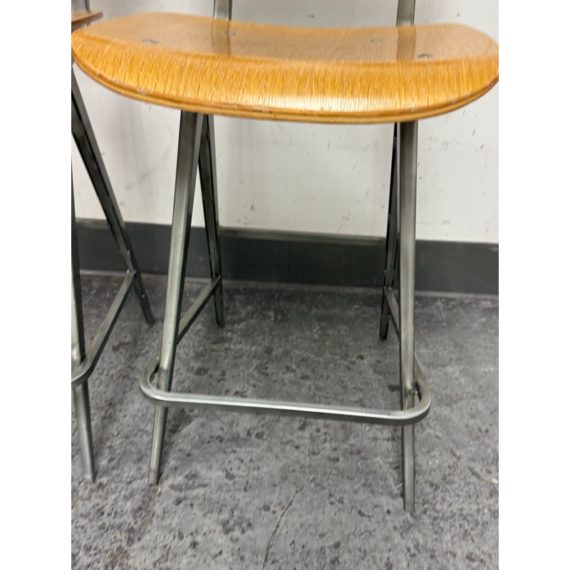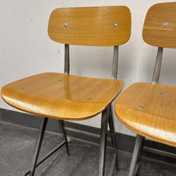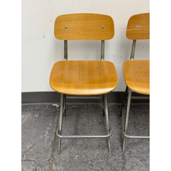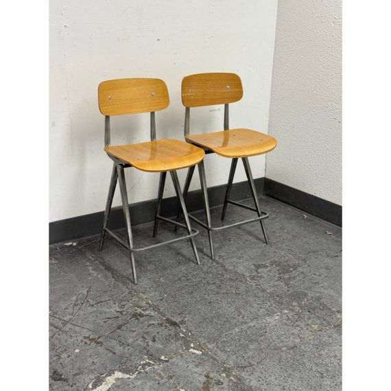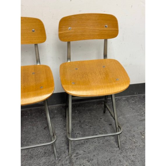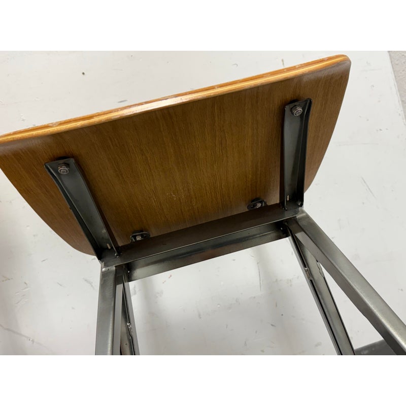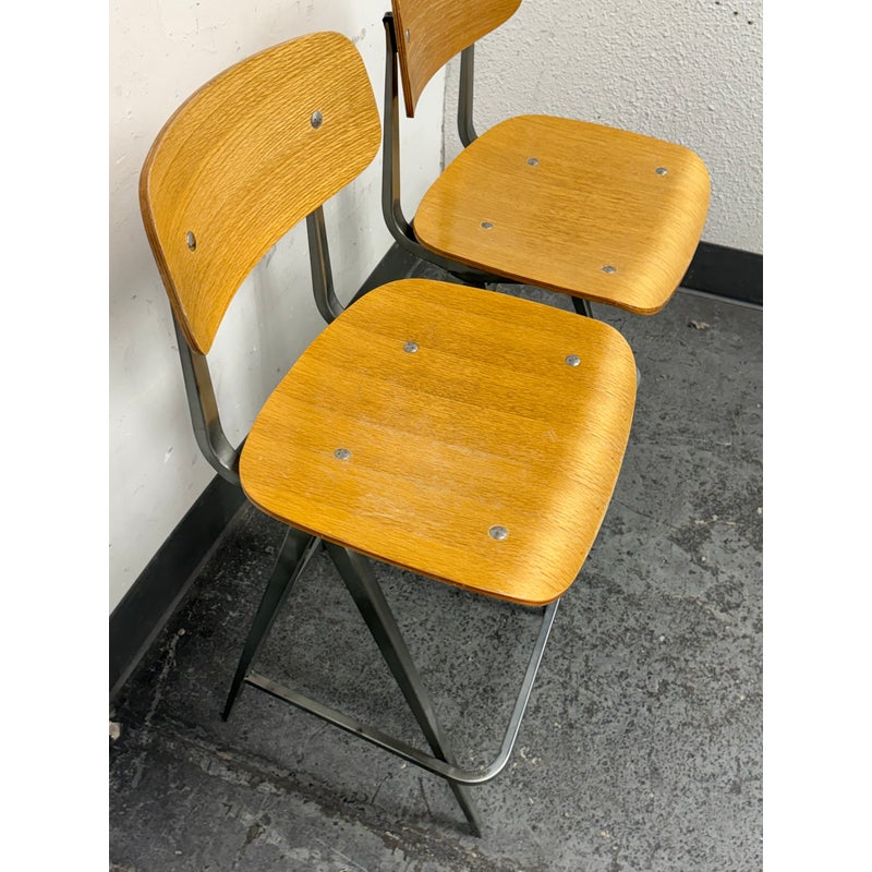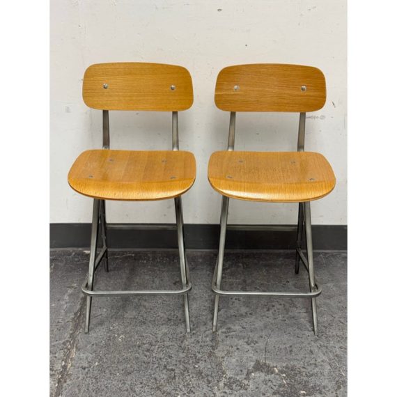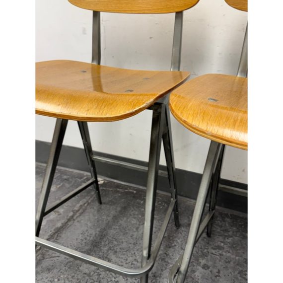 Design Plus Gallery presents a Pair of Madewell Counter Stools from Industry West. A modern rendition of the retro school seat, the Madewell Stool is a unique residential or commercial piece that evokes sentiments of companionship with an industrial edge. Both are in good condition with minimal signs of surface wear for their usage.