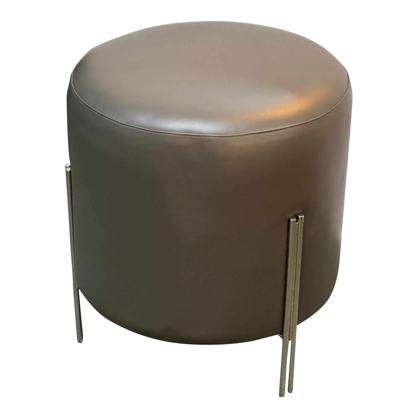 Design Plus Gallery presents a Betina Faux Leather Ottoman by Interlude Home. A versatile seating option, the Betina Stool features a fabulous cushioned seat in smooth taupe faux leather. The stool is elevated s by a stainless steel frame in a matte finish. Light evidence of surface wear; condition is good for age and use.