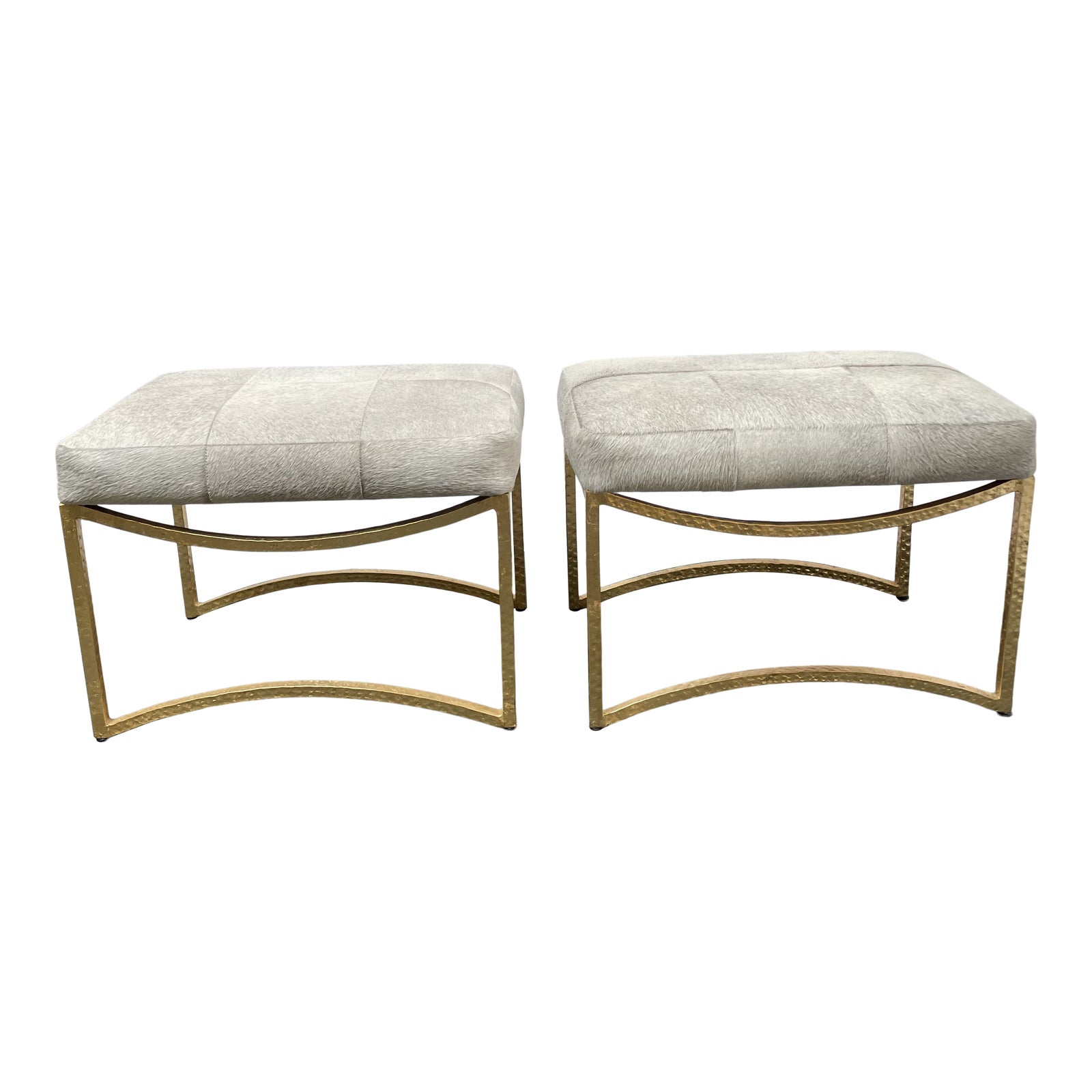 Ironies Hammered Brass + Hair on Hide Custom Benches – a Pair