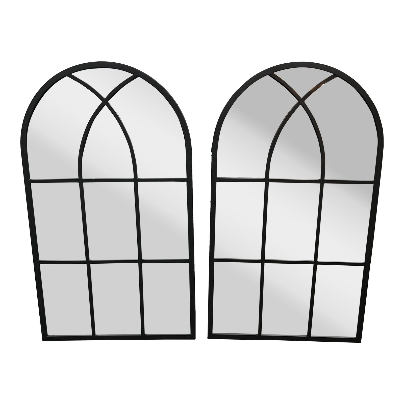 Design Plus Gallery presents a Pair of Arched Wall Mirror from Ironworks. Practically new, just out of box for the photograph. The mirrors reflect like it is a window so they make a useful way of decorating in a windowless room. In good condition, wear consistent with age + use.