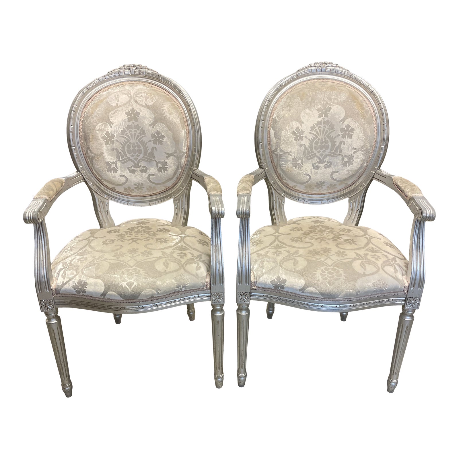 Italian Custom Silver Bergerre Chairs in Fortuny Fabric – a Pair