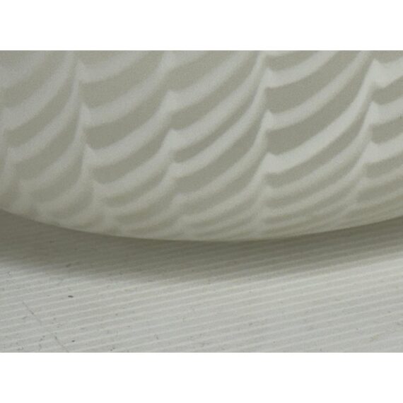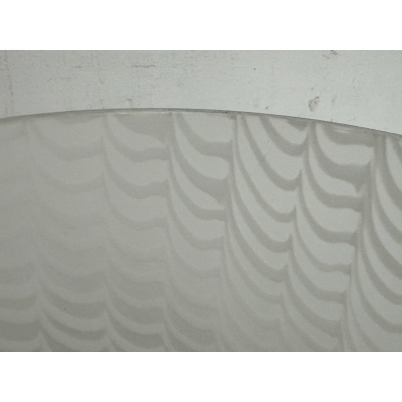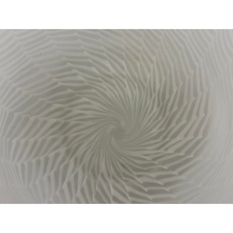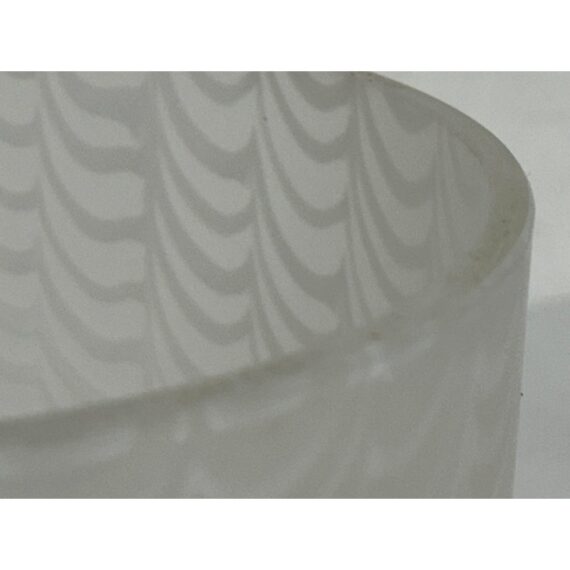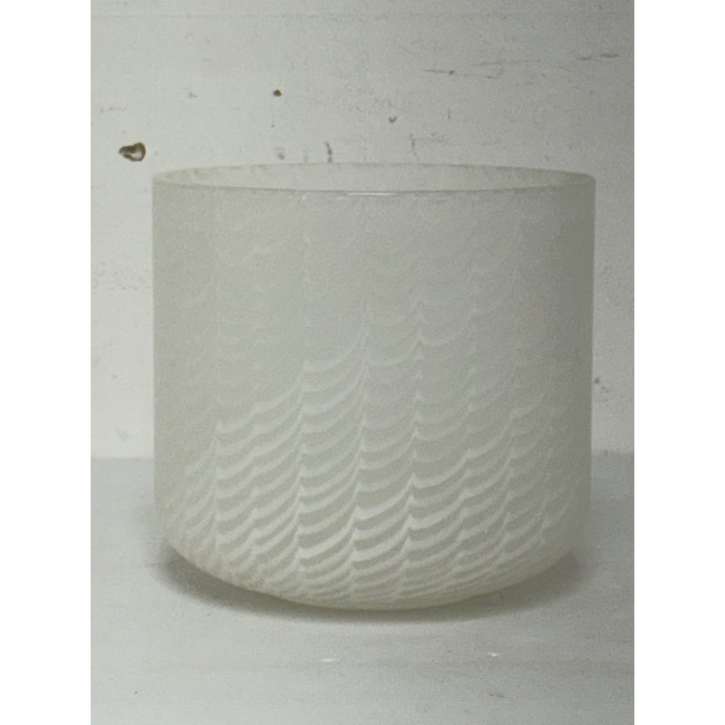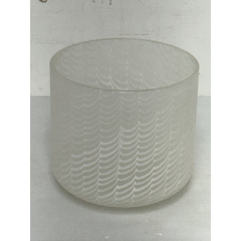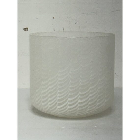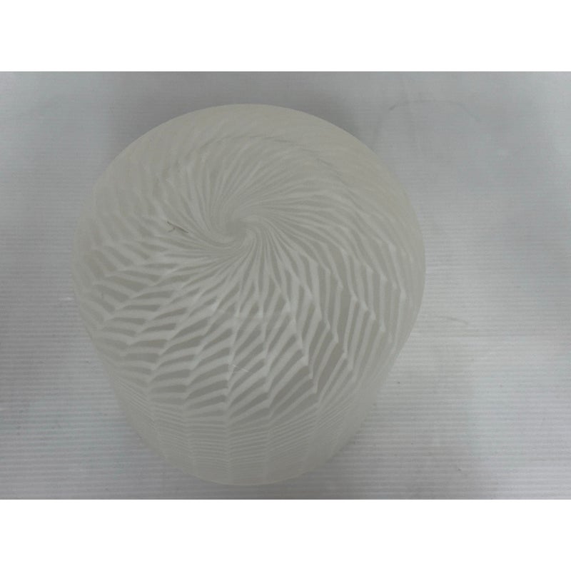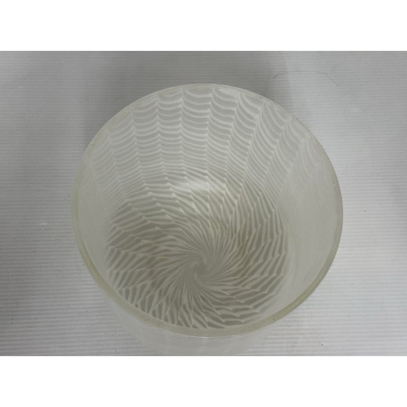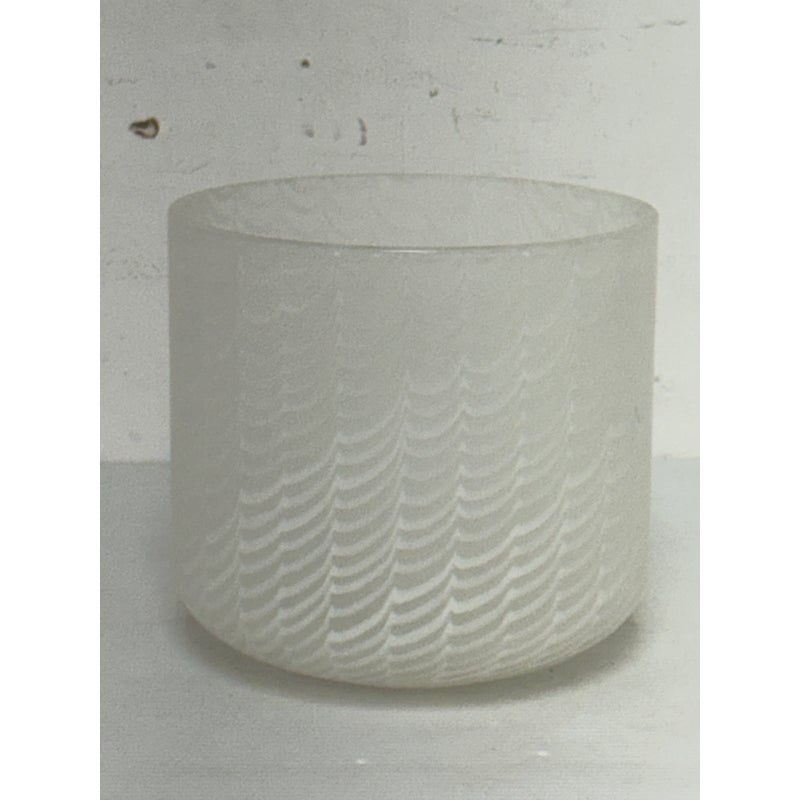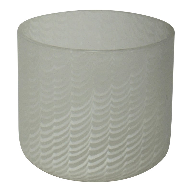 Design Plus Gallery presents a White Latticino Art Glass Bowl. Crafted in the Murano style with a distinct wavy pattern. A venetian “latticino” technique, where delicate canes of white glass are incorporated into clear glass to create intricate patterns. The pattern on this piece resembles a flowing waves. No signature of artist or brand. In good condition, minimal wear from usage. Made in Italy.