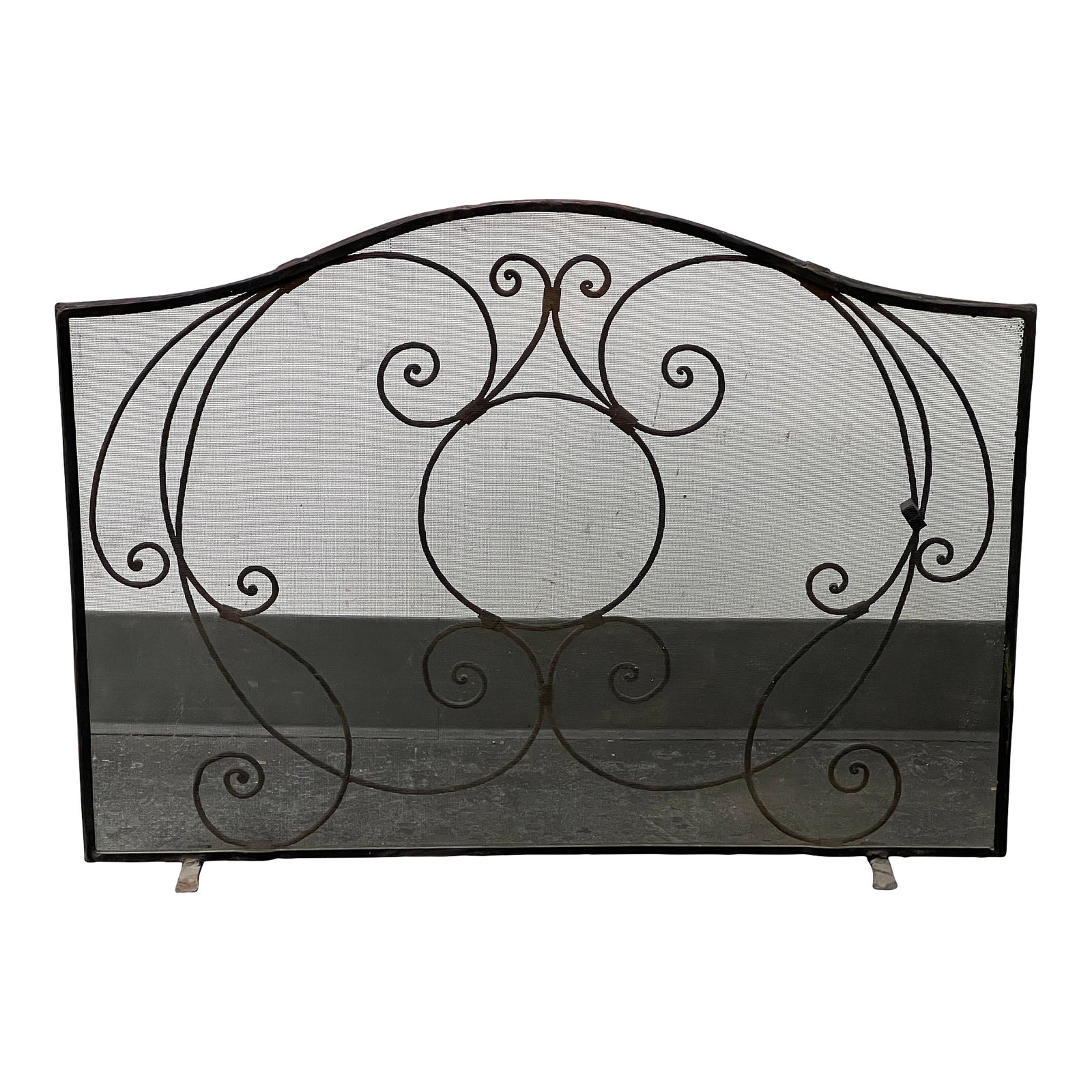 Design Plus Gallery presents a Contemporary Fireplace Iron Screen by J. Barboglio. The classic mission style grate is inviting and romantic especially when lit up by the fire on cold, windy evenings. This is a less frequently used screen and is in good condition thereof. There is a visible tear on the screen.