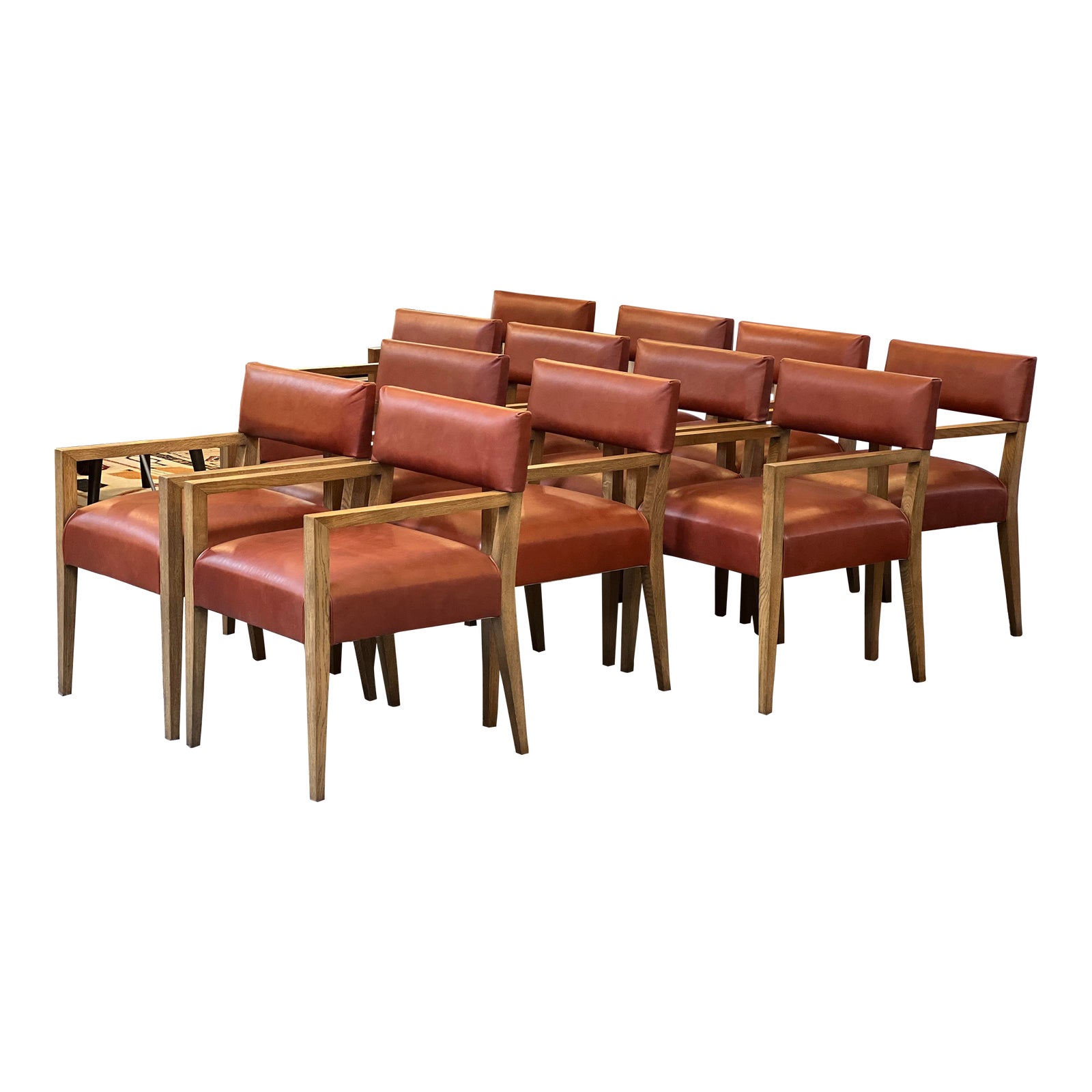 Jean Michel Frank Bridge 1935 Oak Dining Arm Chairs, Set of 12. Original Price: $75,125