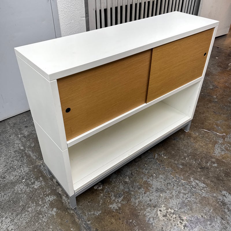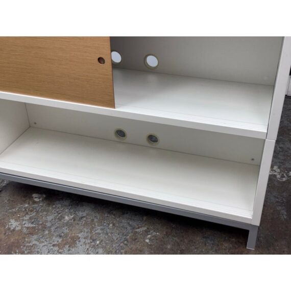 Design Plus Gallery presents a Sapporo Shelving System designed by Jesús Gasca for Stua. A refined modular storage piece that balances modern minimalism with warm material contrast. This system features a crisp white lacquered structure paired with rich walnut sliding doors, creating a timeless and versatile aesthetic.The asymmetrical arrangement of open and closed compartments allows for both display and concealed storage, making it ideal for living rooms, offices, or media spaces. Subtle details, such as integrated finger pulls and elevated metal legs, underscore the system’s clean lines and thoughtful construction. Elegant yet functional, the Sapporo system reflects Stua’s commitment to precision, adaptability, and contemporary design. In good condition, visible and minimal wear from usage. Made in Spain.