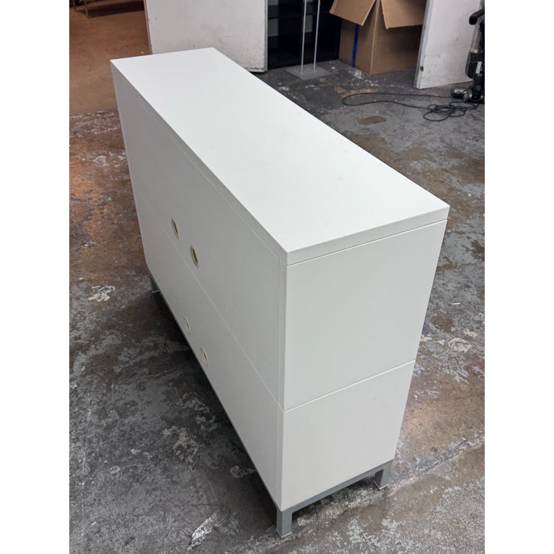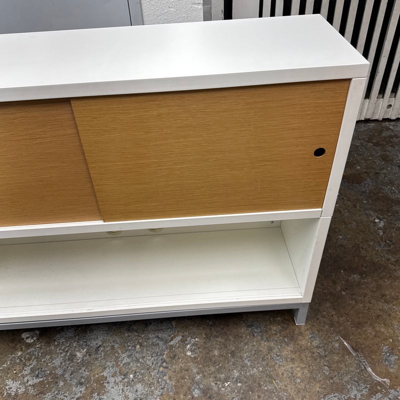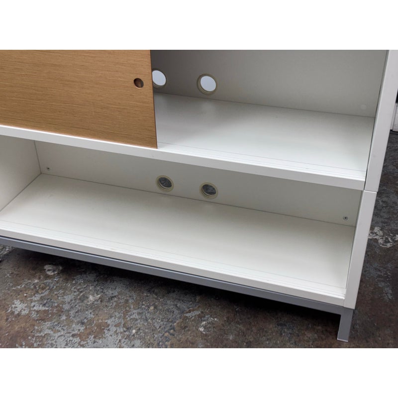 Design Plus Gallery presents a Sapporo Shelving System by Jesús Gasca for STUA/Design Within Reach. A refined modular storage piece that balances modern minimalism with maple toned contrast. This system has a crisp white lacquered frame paired with light wood sliding doors. The asymmetrical arrangement of open and closed compartments allows for both display and concealed storage. Subtle details, such as integrated finger pulls and elevated metal legs, underscore the system’s clean lines and thoughtful construction. Elegant yet functional, the Sapporo system reflects STUA commitment to precision, adaptability, and contemporary design. In good condition, visible and minimal wear from usage. Made in Spain.